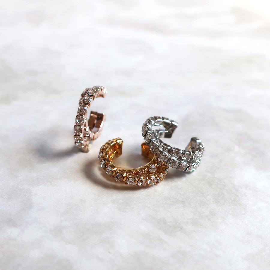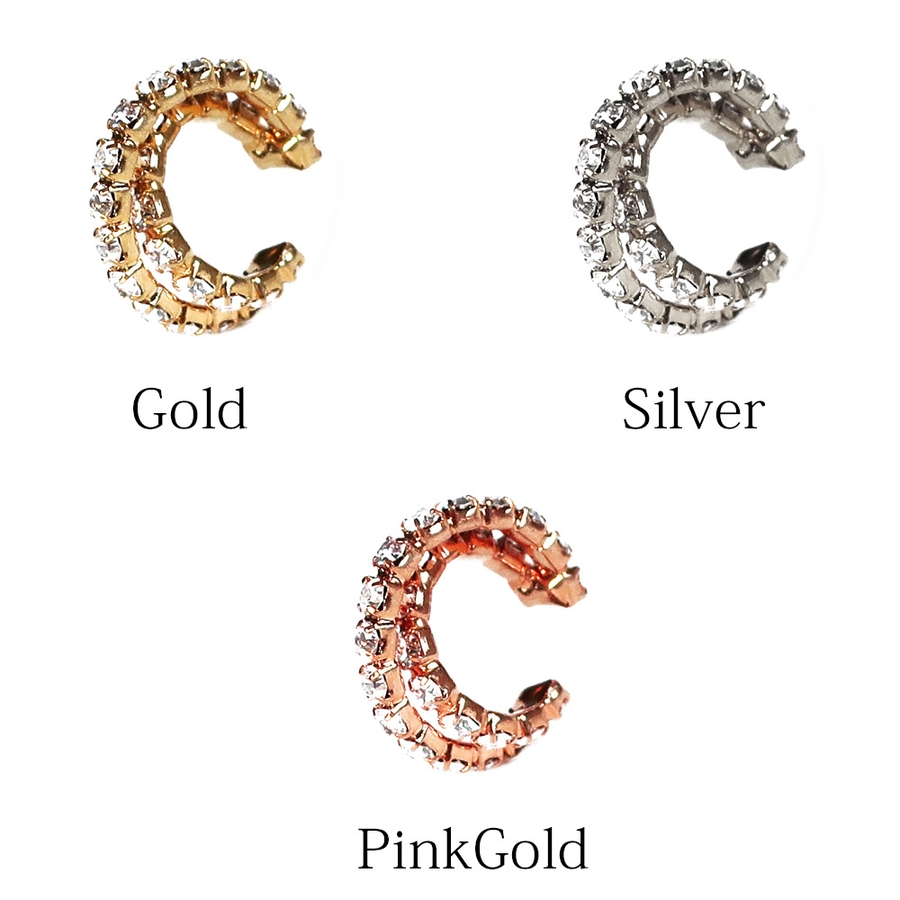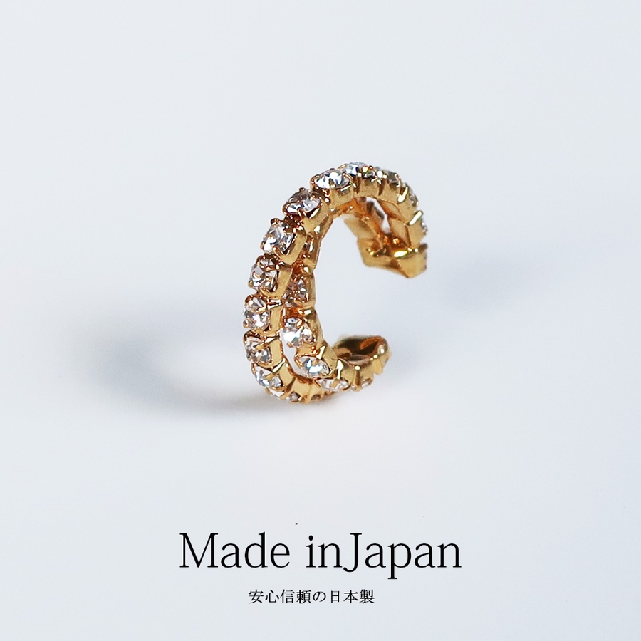 日本製 ニッケルフリー イヤーカフ ウェアリング ラインストーンフープ イヤリング EC-29 イヤーカフス イヤカフス イヤーフック 重ね付け 片耳 軟骨 大ぶり 痛くない ノンホール シンプル メンズ レディース 秋 冬