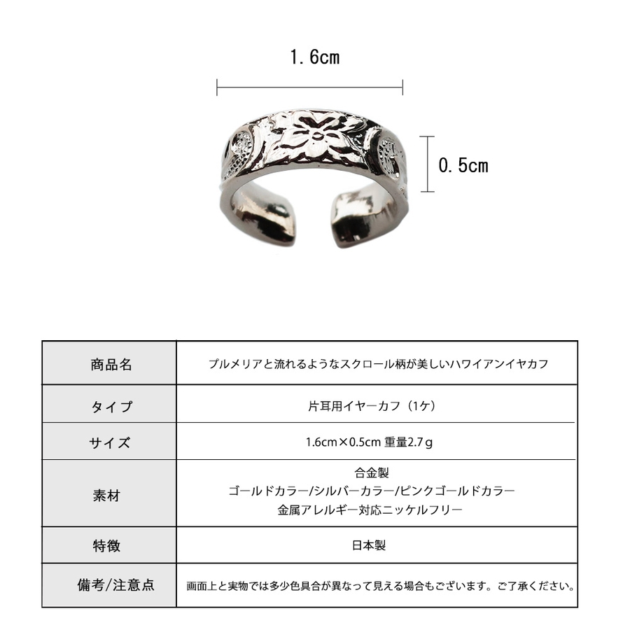 イヤーカフ 日本製 K18GP イヤカフ ハワイアン ハワイアンジュエリー ハワジュ プリメリア マイレ ニッケルフリー メタル シルバー プチプラ プレゼント ブランド おしゃれ 人気 大人 レディース ゴールド シルバー ピンクゴールド k18gp k18金コーティング 金メッキ melody accessory メロディーアクセサリー 20代 30代 40代 50代 レディース ブランド
