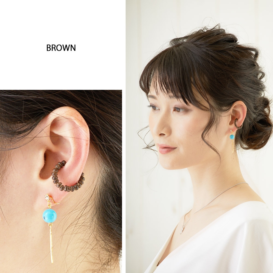 ■商品名:ウッドビーズのイヤカフ(EC-62)4f