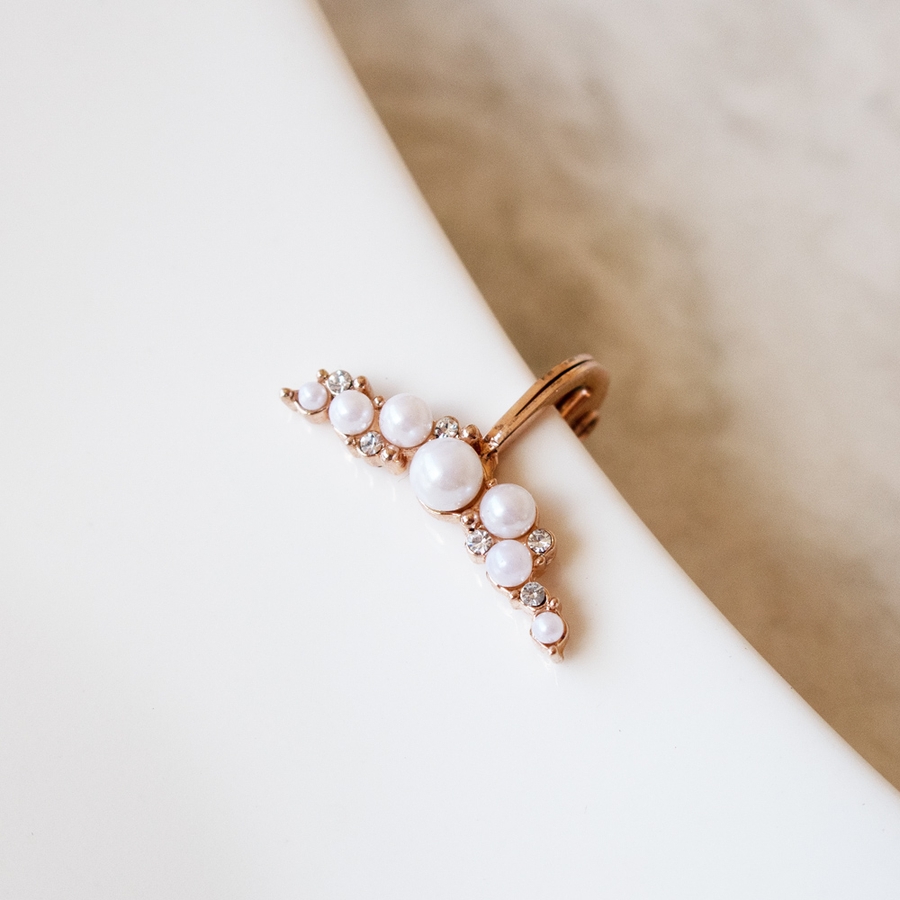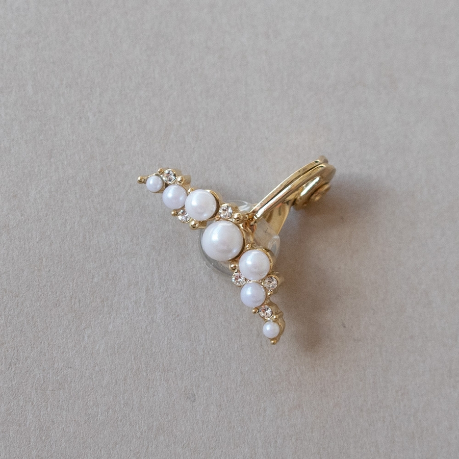 パールとビジューが品よく配置され、可憐で上品な煌めきを放ちてくれます。