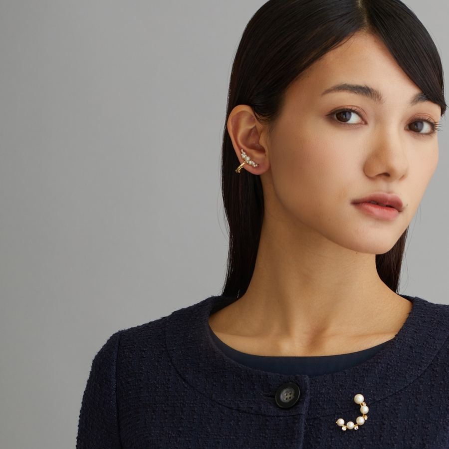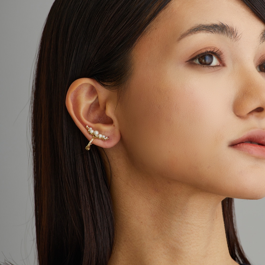 耳の上部に着けたり、耳たぶに沿わせて着けたり、と着ける場所によって雰囲気が変わります。