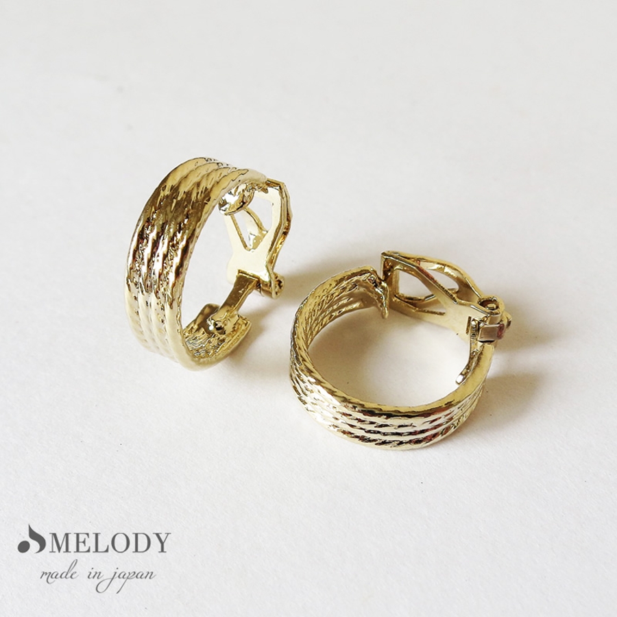 イヤリング フープイヤリング クリップ式 K18GP ニッケルフリー 金属アレルギー クリップイヤリング メタル テクスチャー フープ シンプル 上品 クリップイヤリング オフィス レディース ゴールド シルバー プレゼント メロディーアクセサリー Melody accessory