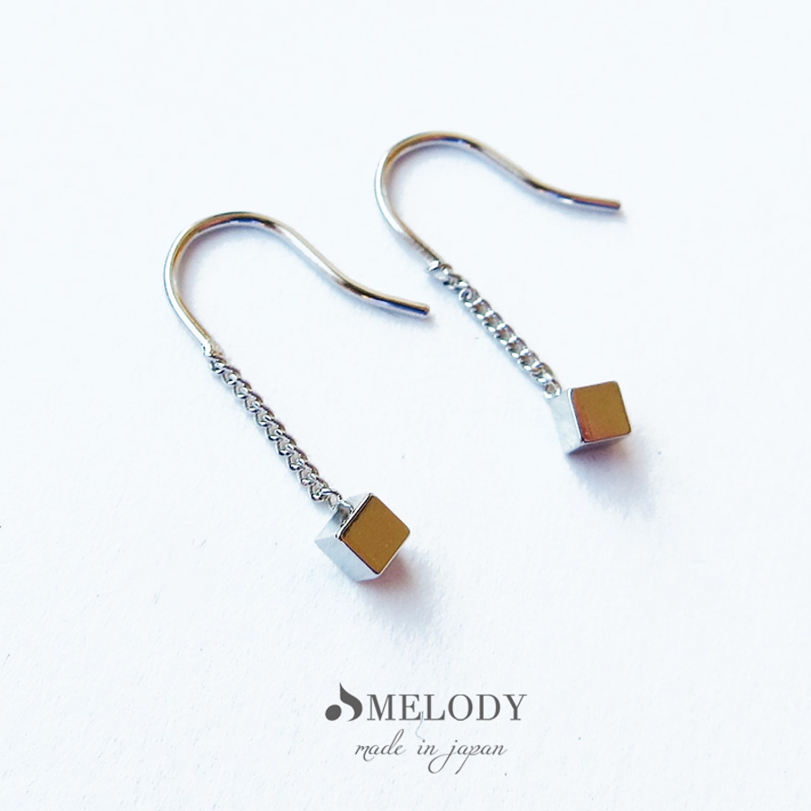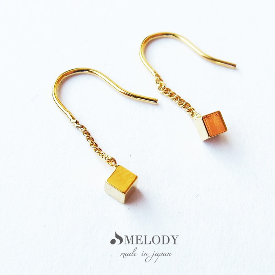 ピアス K18 キューブ フック 揺れる 立方体 しかく 四角 フィッシャーピアス プチ シンプル ゴールド シルバー 小ぶり プレゼント 18金 トレンド ブランド おしゃれ 人気 20代 30代 40代 大人 レディース melody accessory メロディーアクセサリー20代 30代 40代 50代