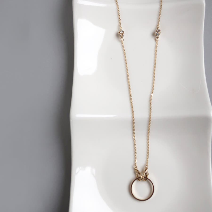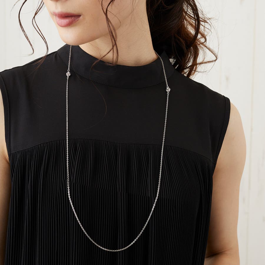 ビジューボールがポイントのロングネックレスとしても楽しめます。