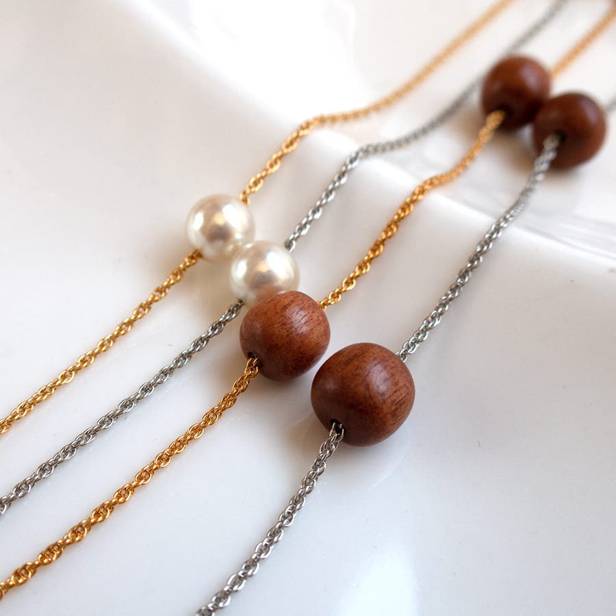 ■ウッド:7粒 ゴールドカラー/シルバーカラー 全長約70cm