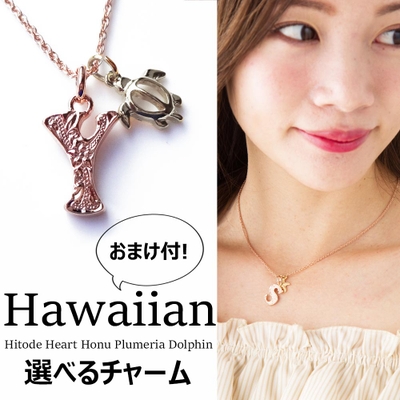 ピンクゴールド ハワイアンイニシャルネックレス シルバードチャーム