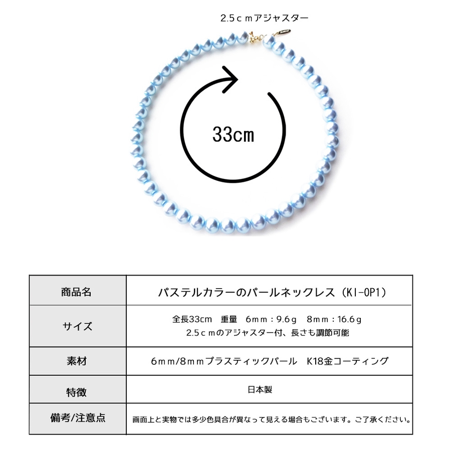 ■商品名:パステルカラーのパールネックレス(KI-OP1)