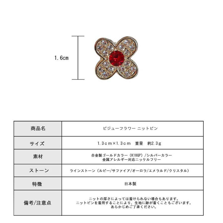 ブローチ ピン スナップボタン ニット フラワー ビジュー ルビーサファイア エメラルド オーロラ クリスタル おしゃれ 日本製 金属アレルギー対応 ニッケルフリー 18KGP アクセサリー レディース かわいい 人気 女性 低アレルギー プチプラ メロディーアクセサリー melody melody accessory