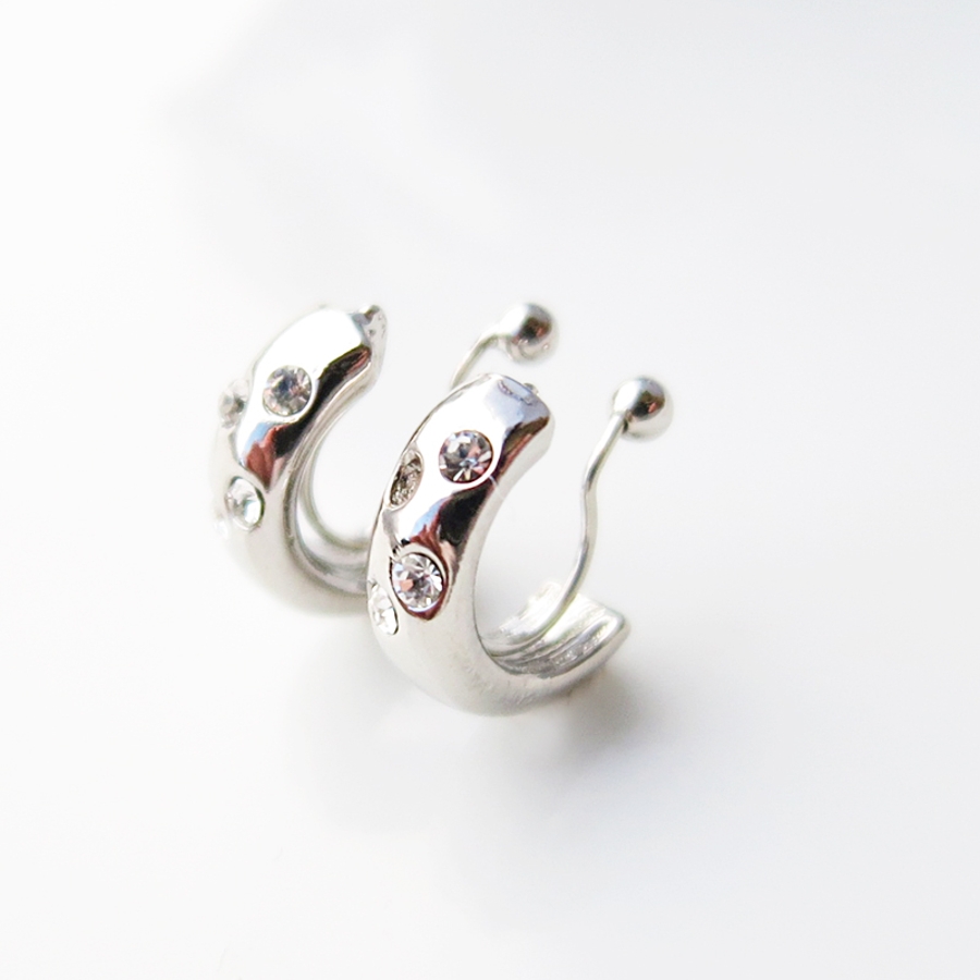 シンプルなフープにドットストーンがほんのりと輝きます。普段使いからパーティまで使えそう♪