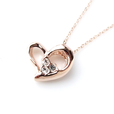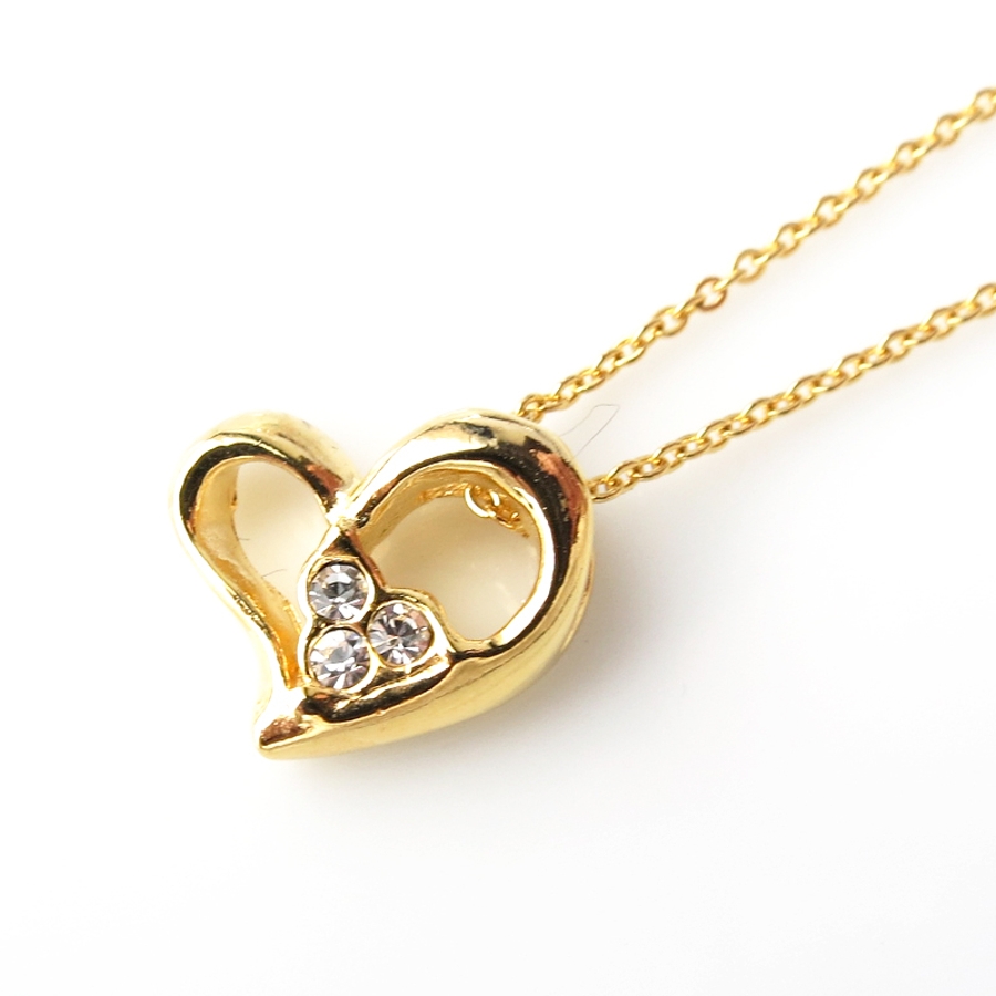 ぷっくりラインのオープンハートモチーフにストーンが飾られたネックレスです。