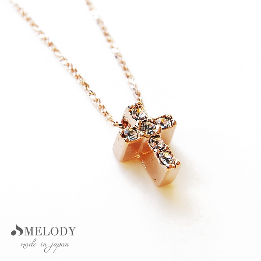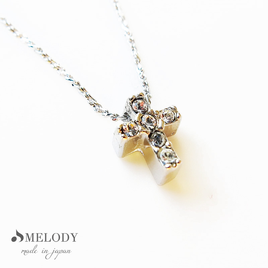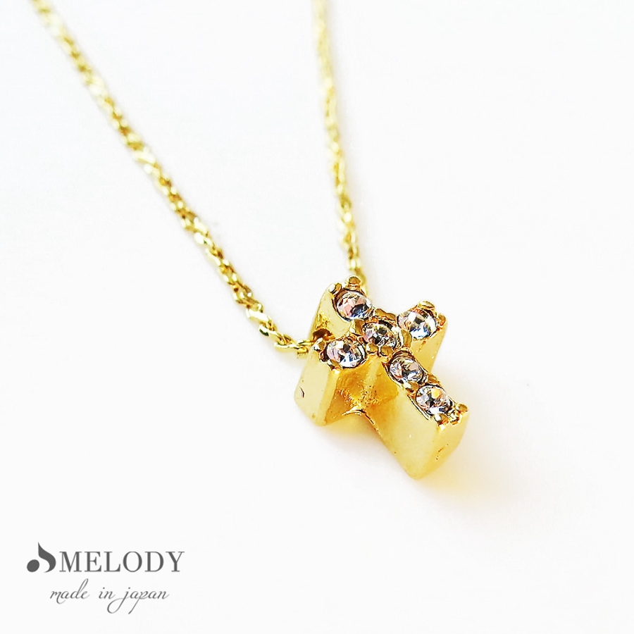 ネックレス ストーン クロス プチ ショート 十字架 スキンジュエリー オフィス レディース ラインストーン ペンダント ゴールド シルバー ブランド チェーン おしゃれ 春 プレゼント 夏 レディース アクセサリー melody accessory メロディーアクセサリー20代 30代 40代 50代