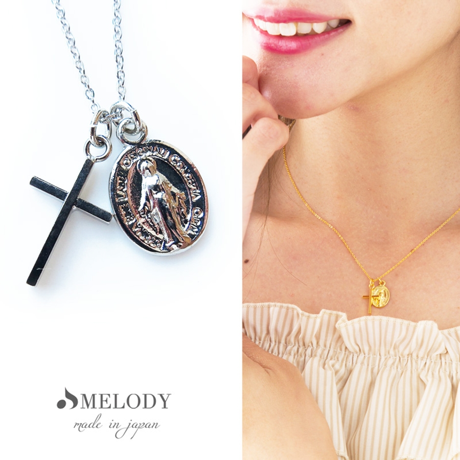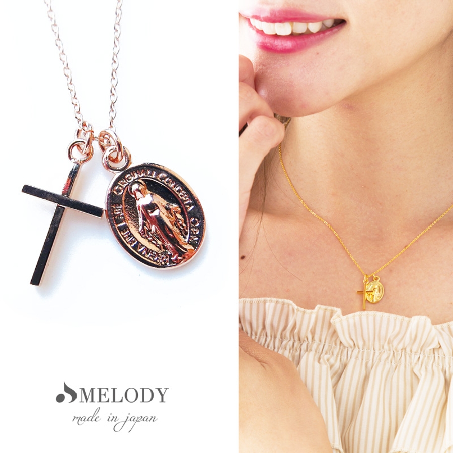ネックレス コイン メダイ クロス メダイユ コイン ゴールド シルバー ペンダント マリア 十字架 揺れる 不思議なメダイ オフィス ゴールド シルバー ブランド チェーン おしゃれ メロディーアクセサリー melody accessory アクセサリー レディース ジュエリー プレゼント シンプル 上品 華奢 きれいめ ピンクゴールド 春 夏 秋 冬