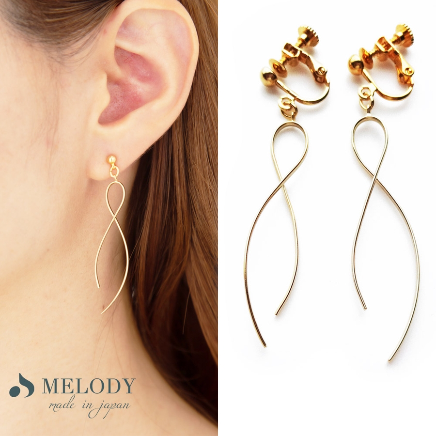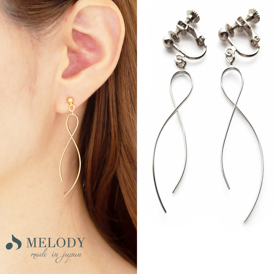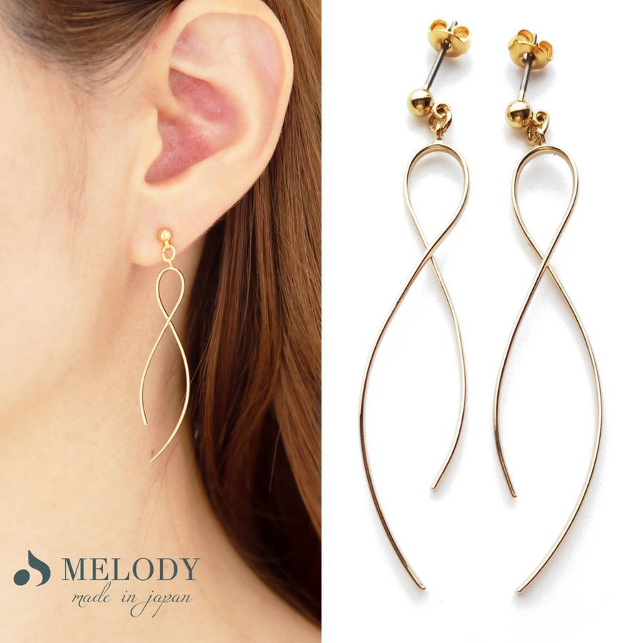 日本製 流れるようなSカーブライン ピアス イヤイング アクセサリー K18 インフィニティ ネジバネイヤリング チタンポスト 純チタン 大ぶり 結婚式 オフィス 揺れる 永遠 ブランド シンプル ゴールド シルバー プレゼント 通勤 18金 melody accessory メロディーアクセサリー 20代 30代 40代 50代 60代 made in japan ee クリスマス ギフト