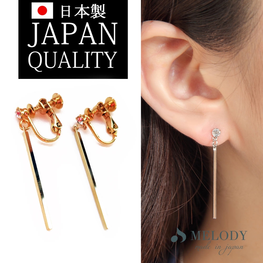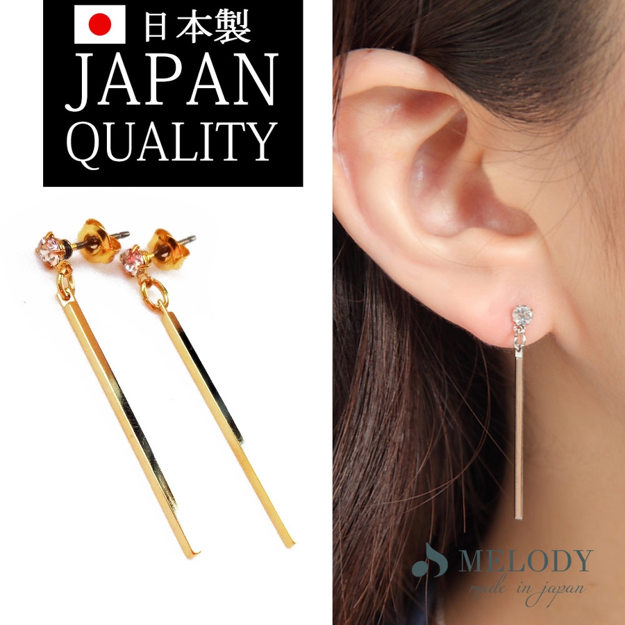 イヤリング ピアス スティック チタンポスト ネジ式イヤリング 日本製 K18GP 純チタン メタル バー 大ぶり ストーン オフィス 揺れる シンプル レディース ブランド プレゼント アクセサリー キャッチタイプピアス 春 夏 秋 冬 ブランド シンプル ゴールド シルバー おしゃれ