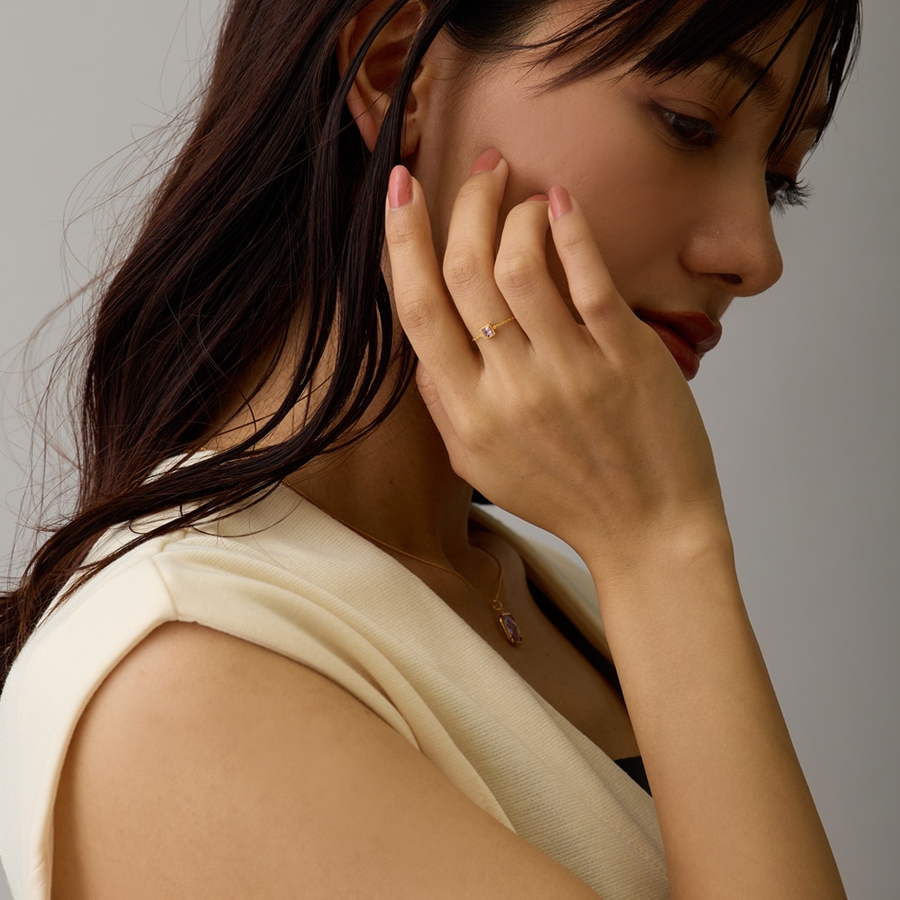 そんな軽やかな着け心地のチェーンリングが人気。指先で輝きを放っています。