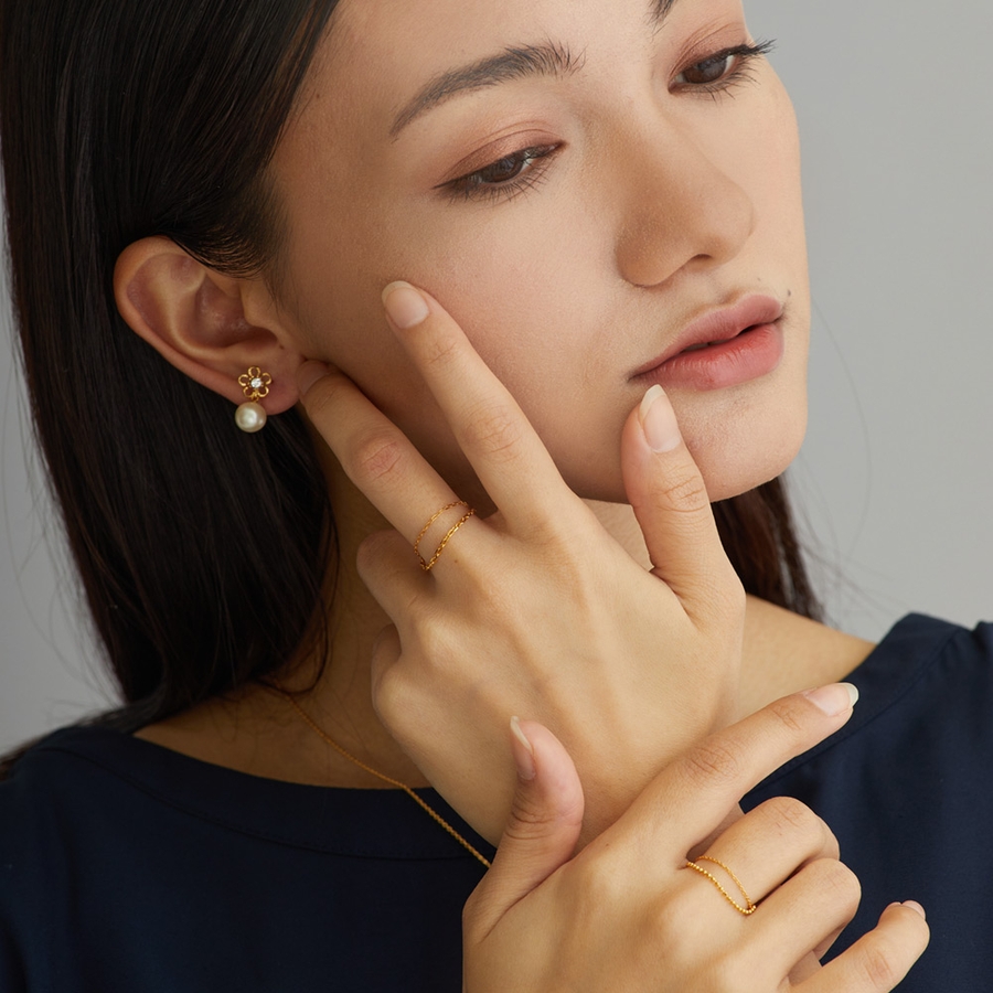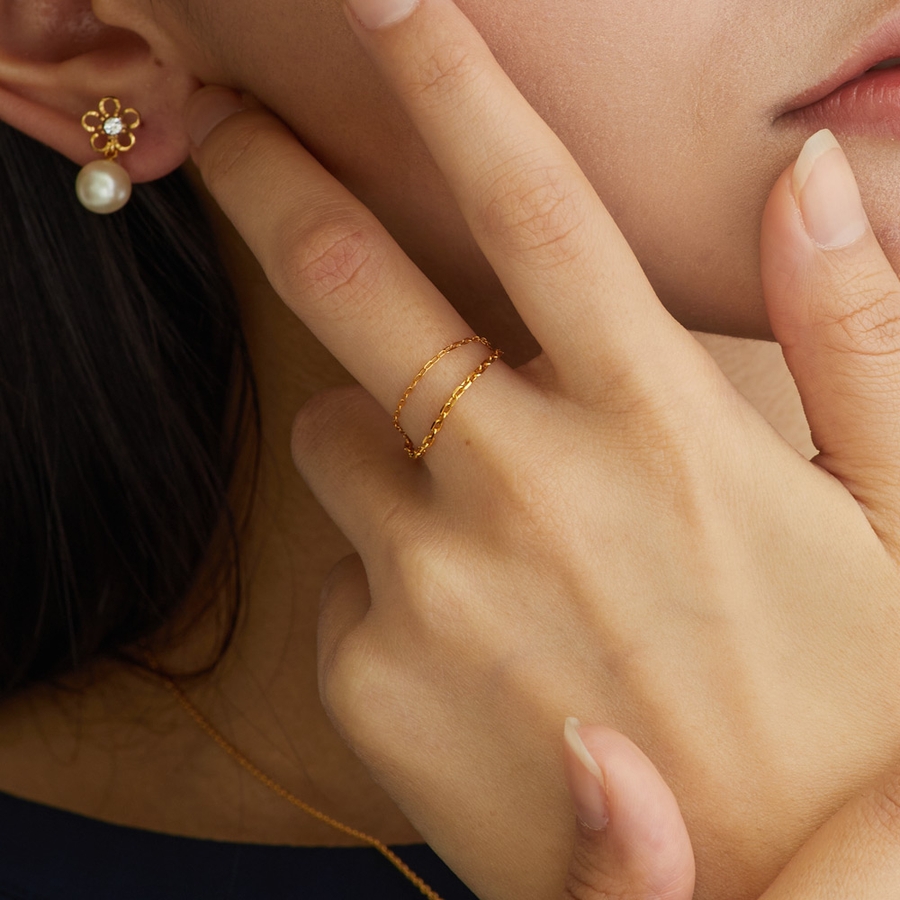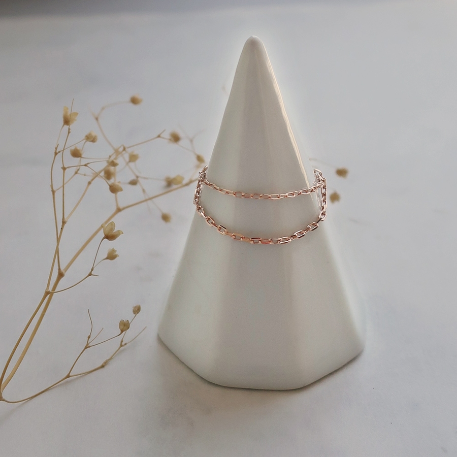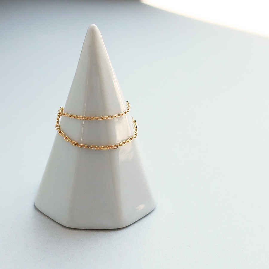 人差し指からピンキーリングまで幅広く似合うチェーンリング。