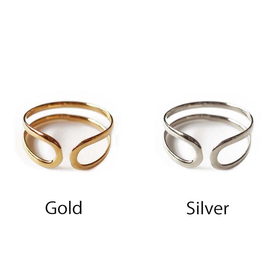 シンプルな細いデザインのリングをコの字型にした指輪。