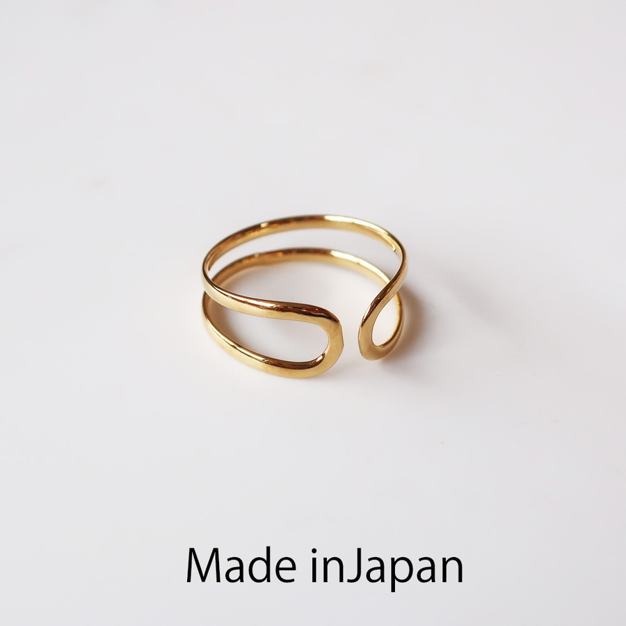 日本製 ニッケルフリー スタイリッシュ アクセサリー リング K18 金属アレルギー おしゃれ ダブル リング 指輪 ピンキーリング ペアシンプル 重ね付け プレゼント レディース 夏 通勤 18金 melody accessory メロディーアクセサリー 20代 30代 40代 50代 60代 made in japan クリスマス ギフト