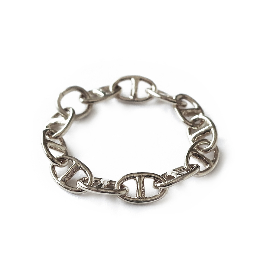 洗練されたデザインと華奢すぎない、程良いボリューム感のマリンチェーンリング。