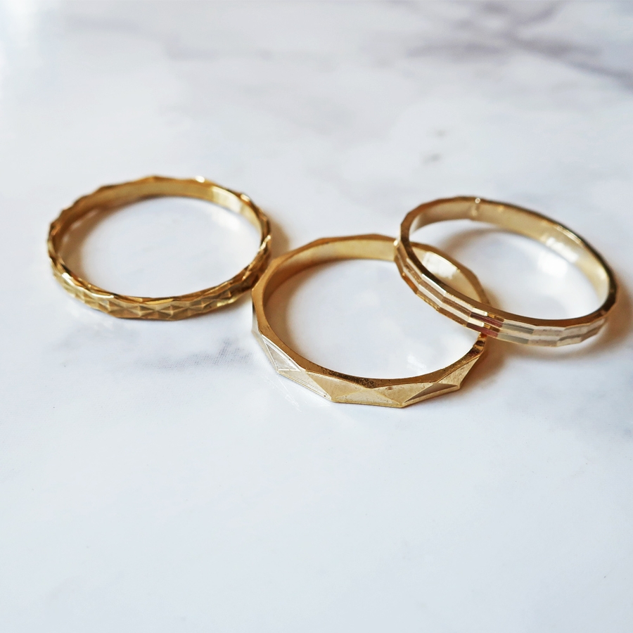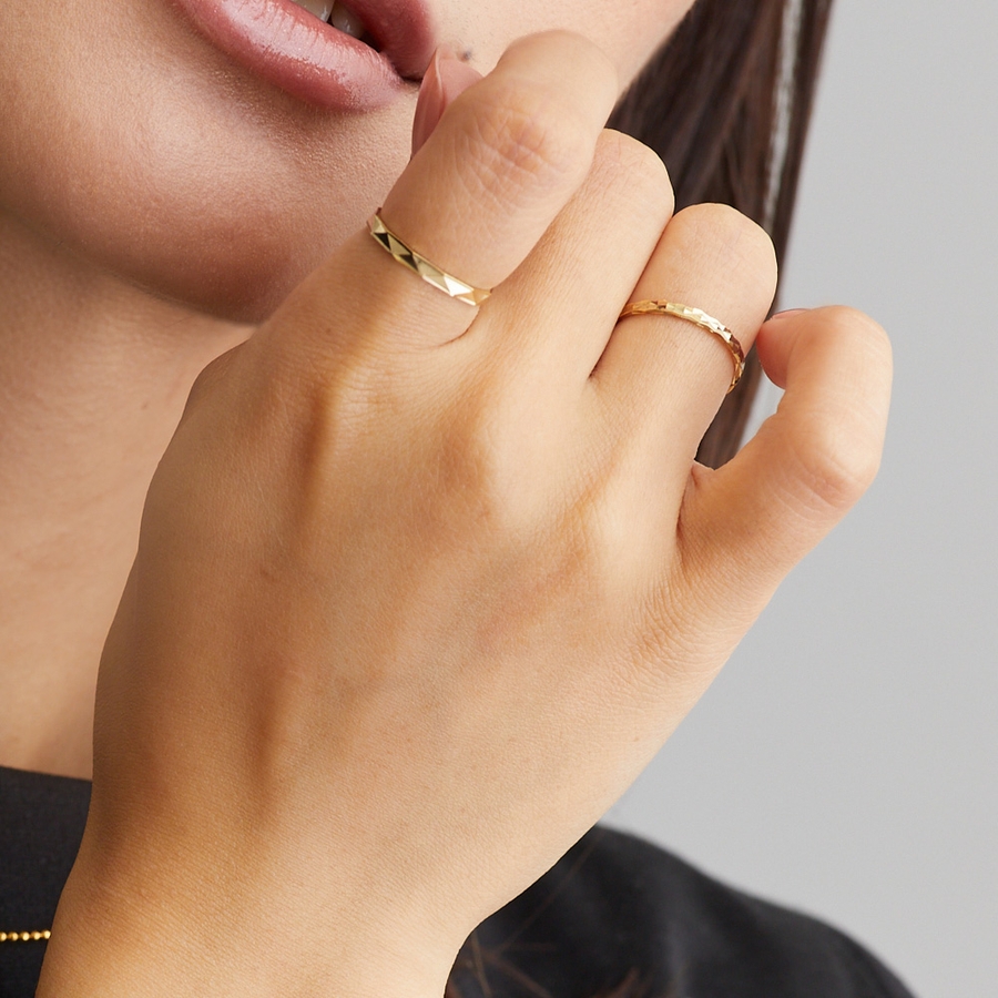 職人の技が際立つ、ダイヤカット加工のリング。