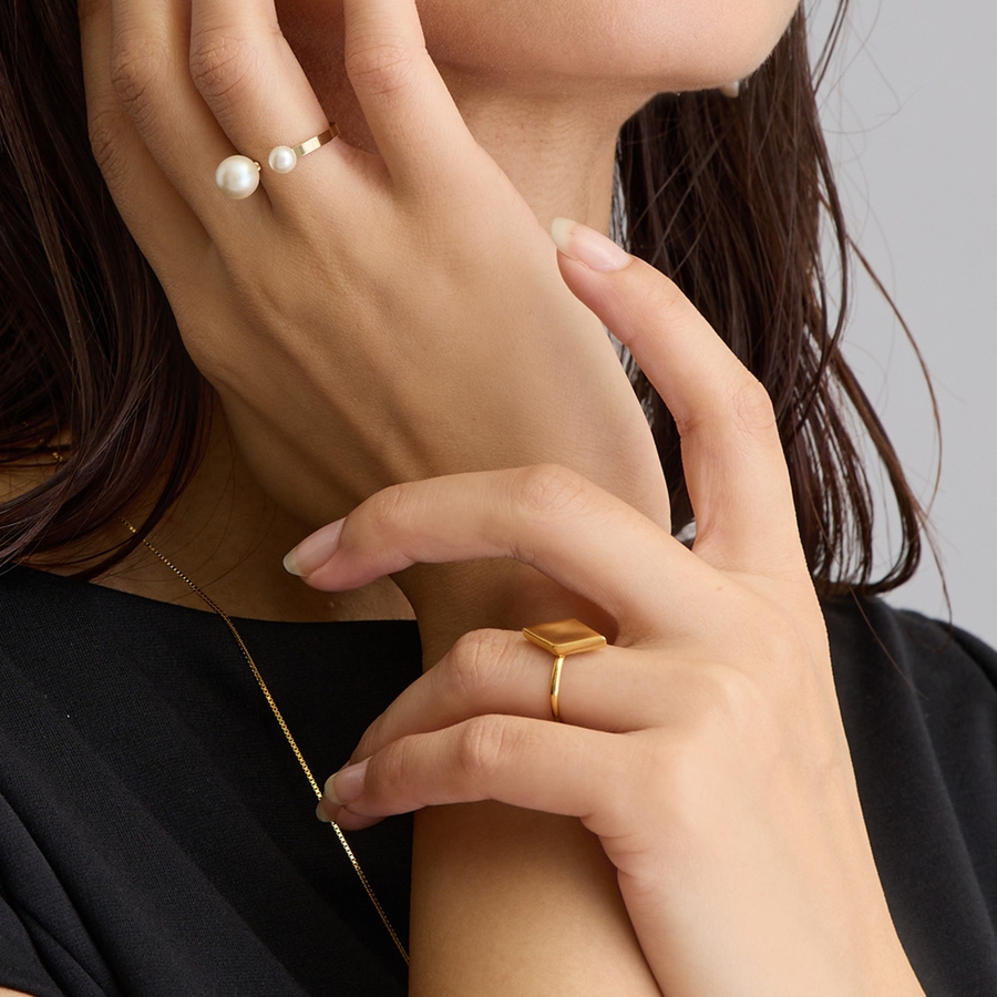 しっかりした厚みもあるので、大人の女性の指先にマッチする日本製リングです。