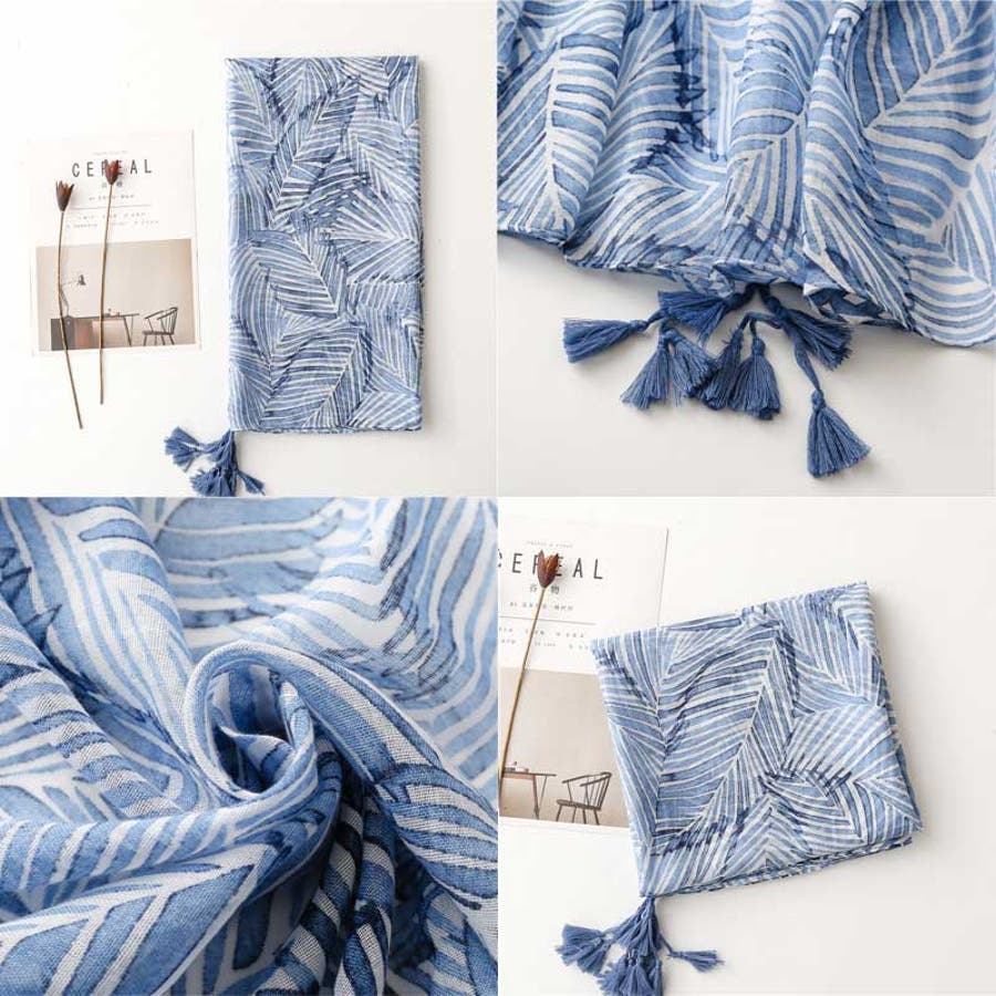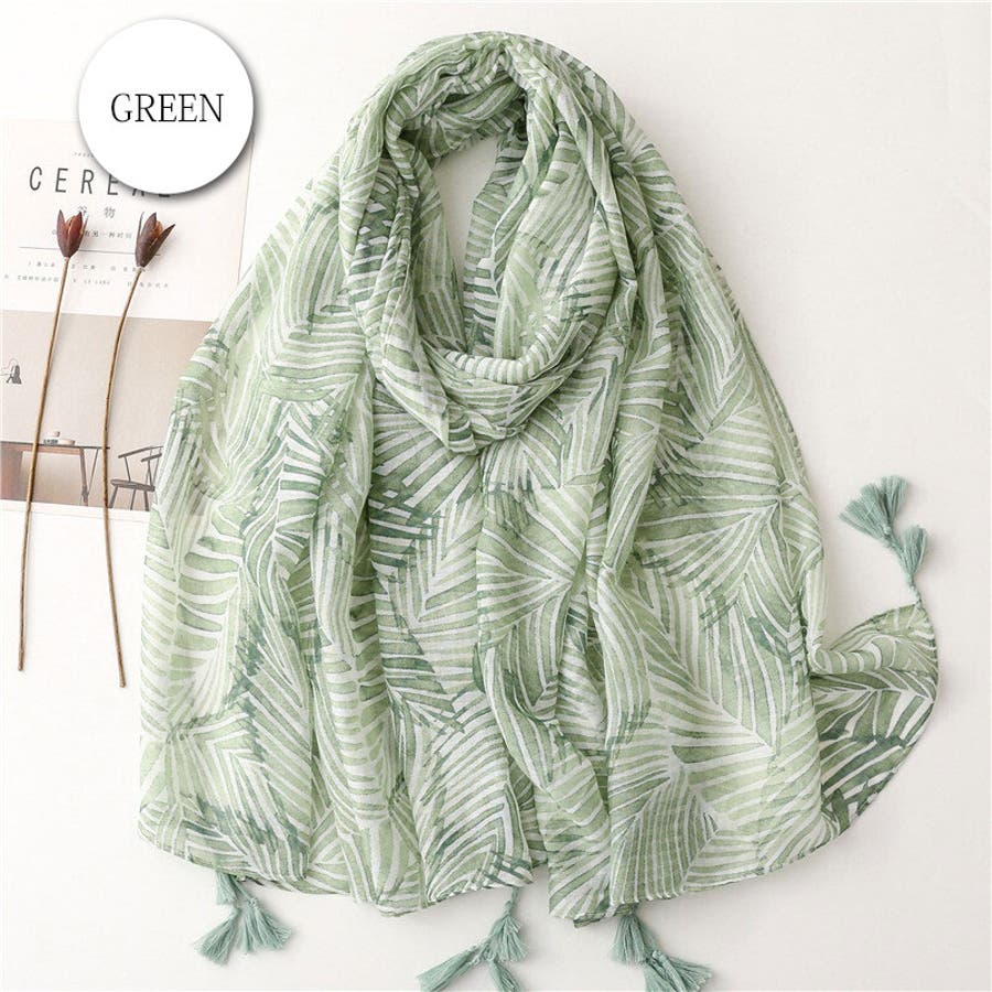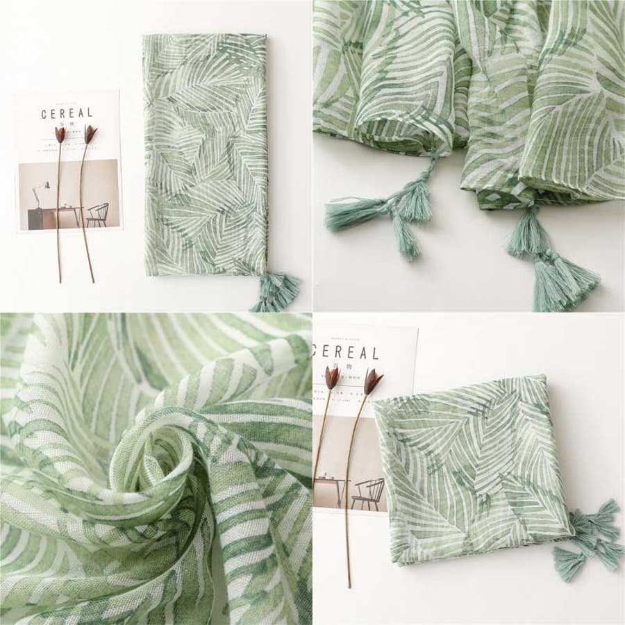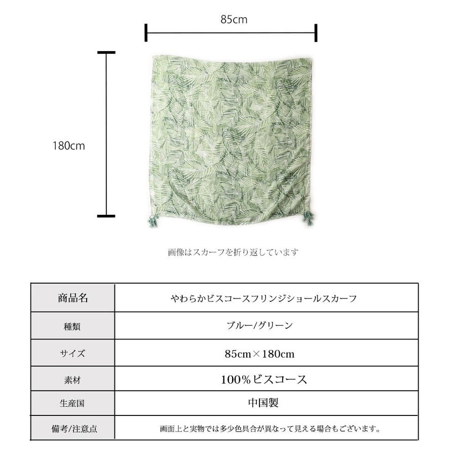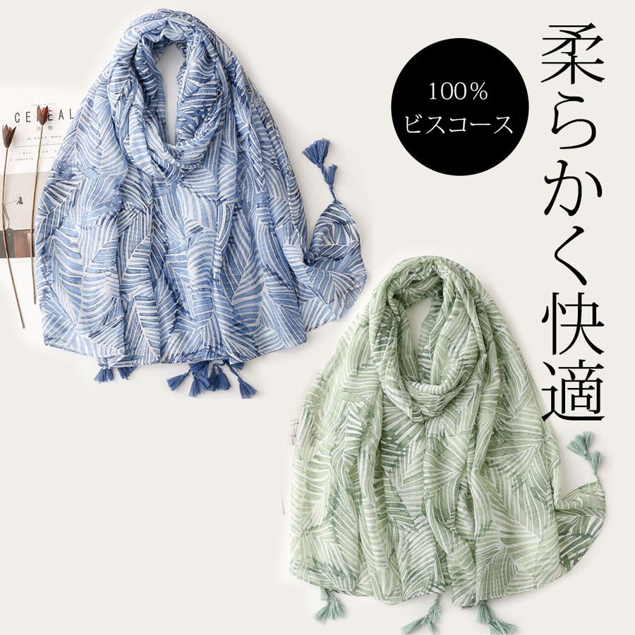 ショール ストール スカーフ フリンジ 大判 大き目 大判 薄型 タッセル付き 日焼け防止 パレオ おしゃれ 長方形 長い 小物 大人カジュアル プレゼント ギフト グリーン 緑 ブルー 青 白 ホワイト エメラルドグリーン ボタニカル リーフ 葉 melody accessory メロディーアクセサリー