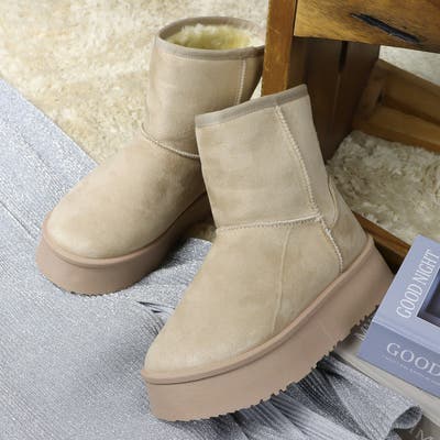 4cmソール ボア 裏起毛 厚底ファーブーツ ☆6363