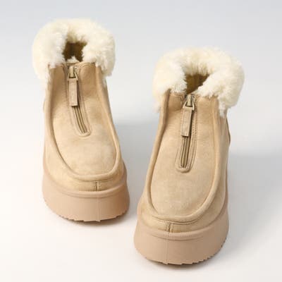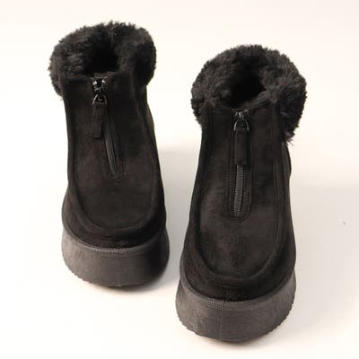 4.5cmヒール 裏起毛 ボア 厚底ファーブーツ ☆6368