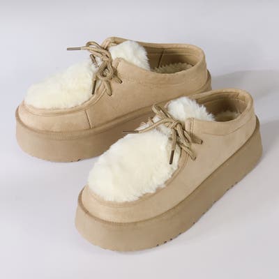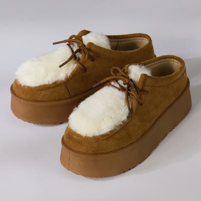 思わず触れたくなるようなファーの質感と、軽やかに歩ける厚底ソールが魅力のチロリアンシューズ!