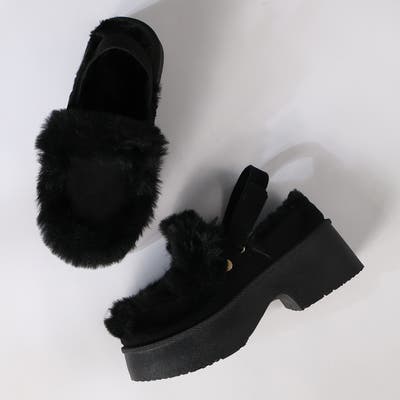 6cmヒール 裏起毛 ボア バックベルトファースリッポン ☆6423