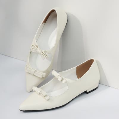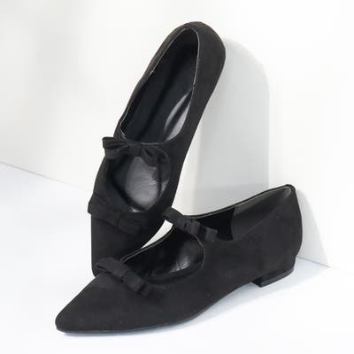 リボンディテールをポインテッドトゥでほんのり辛口なバランスに仕上げた一足!