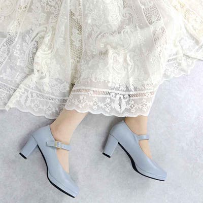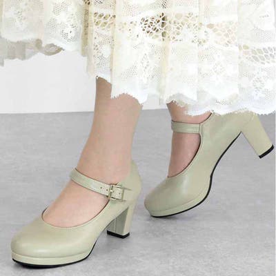 【ホワイトPU】7cmチャンキーヒール 歩きやすい 履きやすい