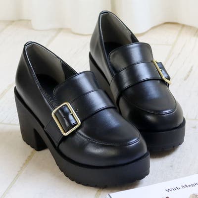 ローファーはマニッシュなアイテムですが、厚底&ヒールとラウンドトゥの