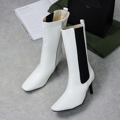 7.5cmヒール スクエアトゥ サイドゴア ミドル ブーツ ☆9103