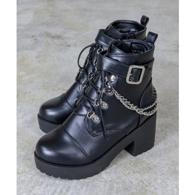 モード系やガーリーなファッションと相性の良いチェーン装飾のブーツは、
