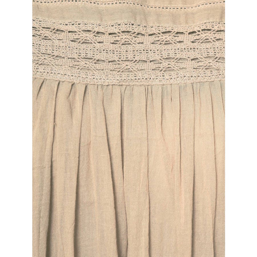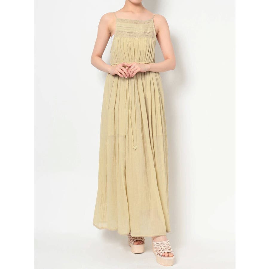 \毎年人気のインドシリーズが今年も登場!/インド綿使用・インド生産のワンピース。インド綿ならではの柔らかな風合いと、少しあせたような独特の色味が特徴的で、エスニックな雰囲気に仕上げています。湿気に強く通気性に優れているため、夏にぴったりなアイテムです。そのインド綿をたっぷりと使用したアメスリタイプのワンピースは、後ろのロープでウエストを絞ることによりスッキリ見せ、ゆるめるとゆったりとしたシルエットでも楽しめる万能アイテム。レースは幅にもこだわり、ナチュラルながらも可愛らしさを忘れないワンピースです。▼スタイリングシアーシャツを羽織ったり、スラブのカーディガンを合わせたコーディネートがおすすめ。足元はサンダルを合わせてシーズンムードを高めると◎。※胸元のレースは切替幅をキープしたまま、レースの幅を太くします。----------------------------透け感:あり裏地:あり----------------------------▼インドシリーズ・バックシャンカットワークレースワンピース 002120301001・ カットワークレースフレアチュニックブラウス 002120400701