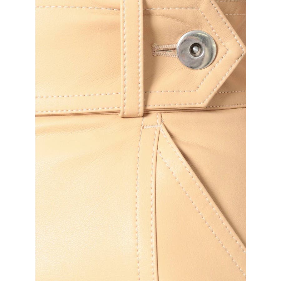 シンプルで可愛いです。フェイクレザーなので若干重いですが気にならない程度です。タイトスカートですが、スリットが入っているので動きやすいです。