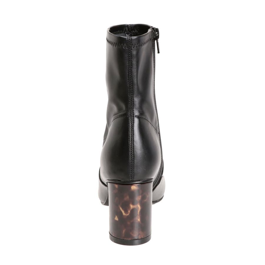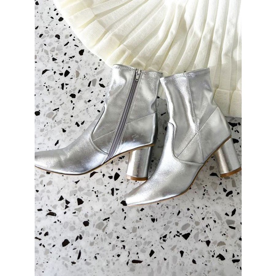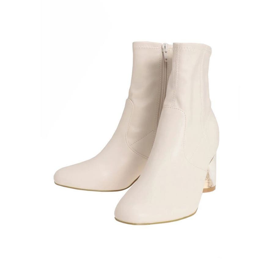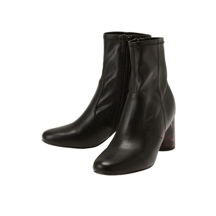 ストレッチのしっかり効いたシンプルなショートブーツはトレンド問わず長く使える万能アイテム。ヒールが大理石のようなマーブル柄がアクセントになっています。今年はメタリックカラーがトレンドなので、メタリックのシルバーとダークブロンズは大理石ヒールではなく、すべてメタリックカラーになっています。春の柔らかいスタイリングにメタリックブーツをあわせると一気に今年顔になります。【スタッフ着用レビュー】 スタッフA(普段のサイズ: 23.5cm/足の幅: 9.0cm/甲の高さ: 5.7cm)36サイズを着用し丁度良いサイズ感でした。柔かい素材なので履き口も柔らかく歩きやすいです。