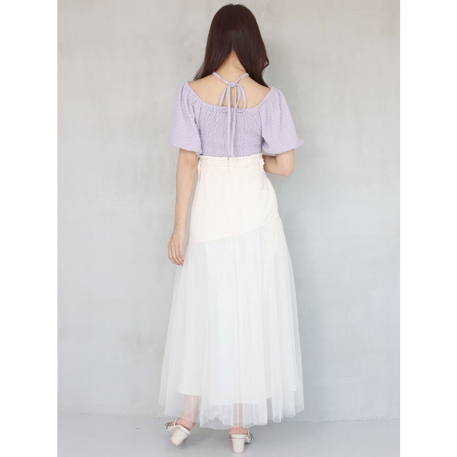 | 素材 | 表地:ポリエステル100% 別布:ポリエステル100% チュール:ナイロン100% 裏地:ポリエステル100% |