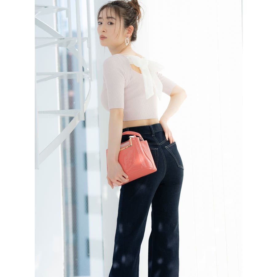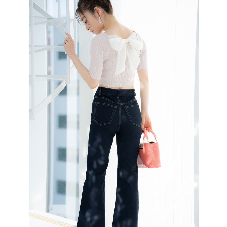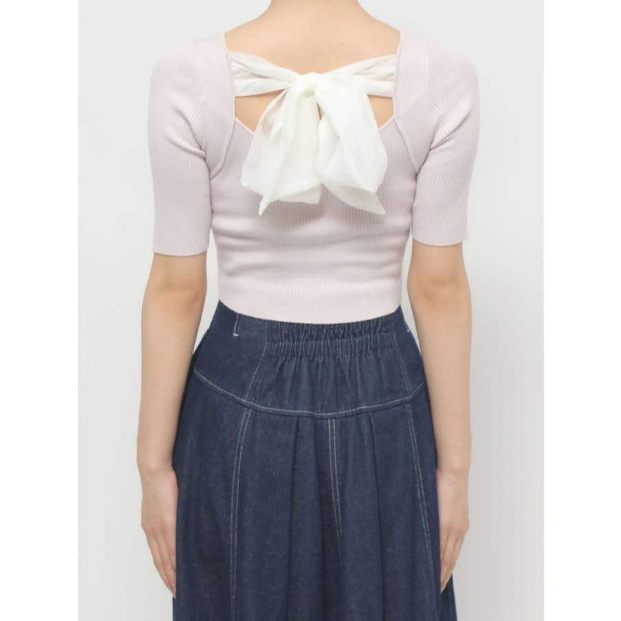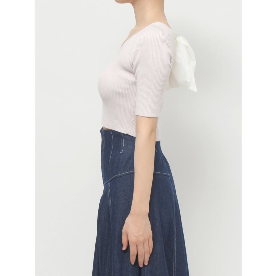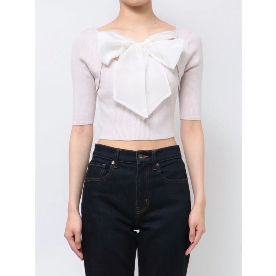 スッキリとしたリブ編みと、クロップド丈のコンパクトさが、ふんわりとしたビッグリボンと合わさると、より上質な可愛さをプラス。