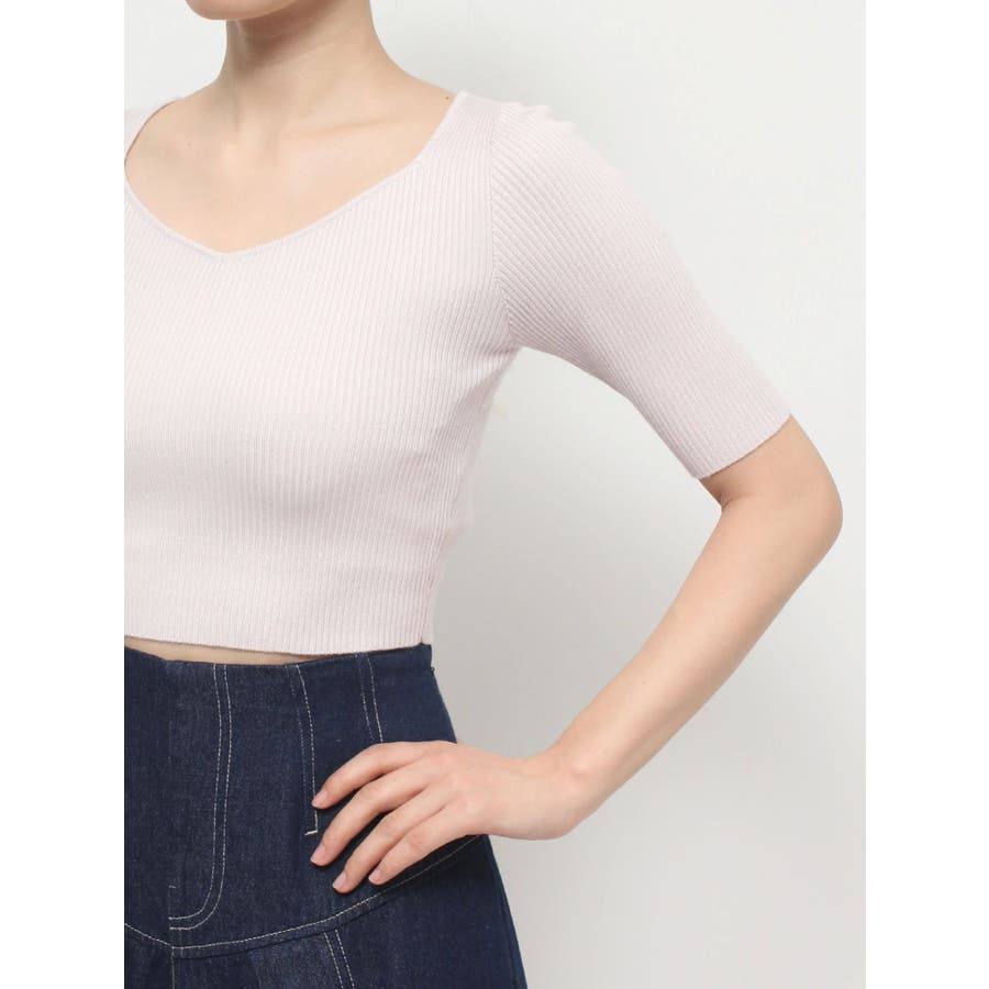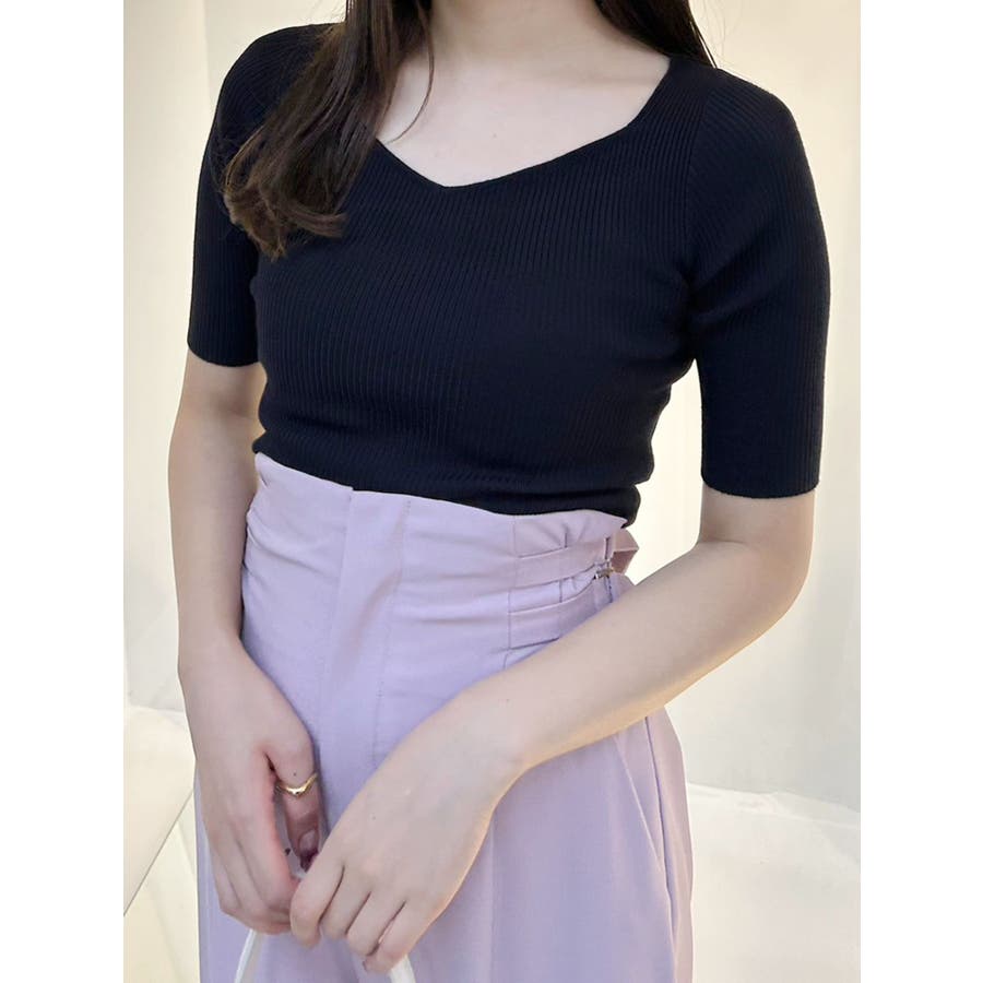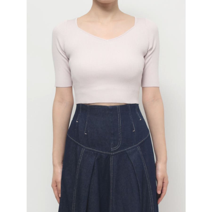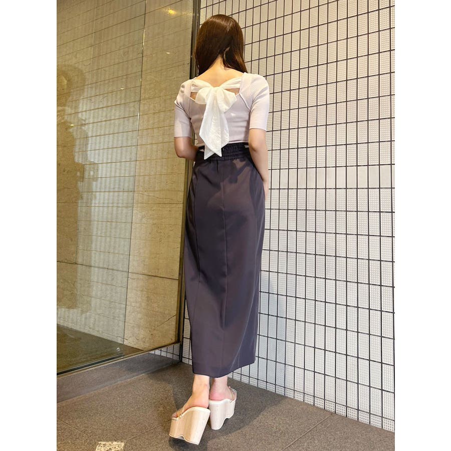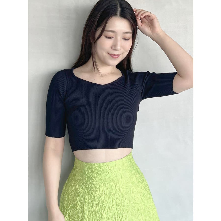 スッキリとしたリブ編みと、クロップド丈のコンパクトさが、ふんわりとしたビッグリボンと合わさると、より上質な可愛さをプラス。