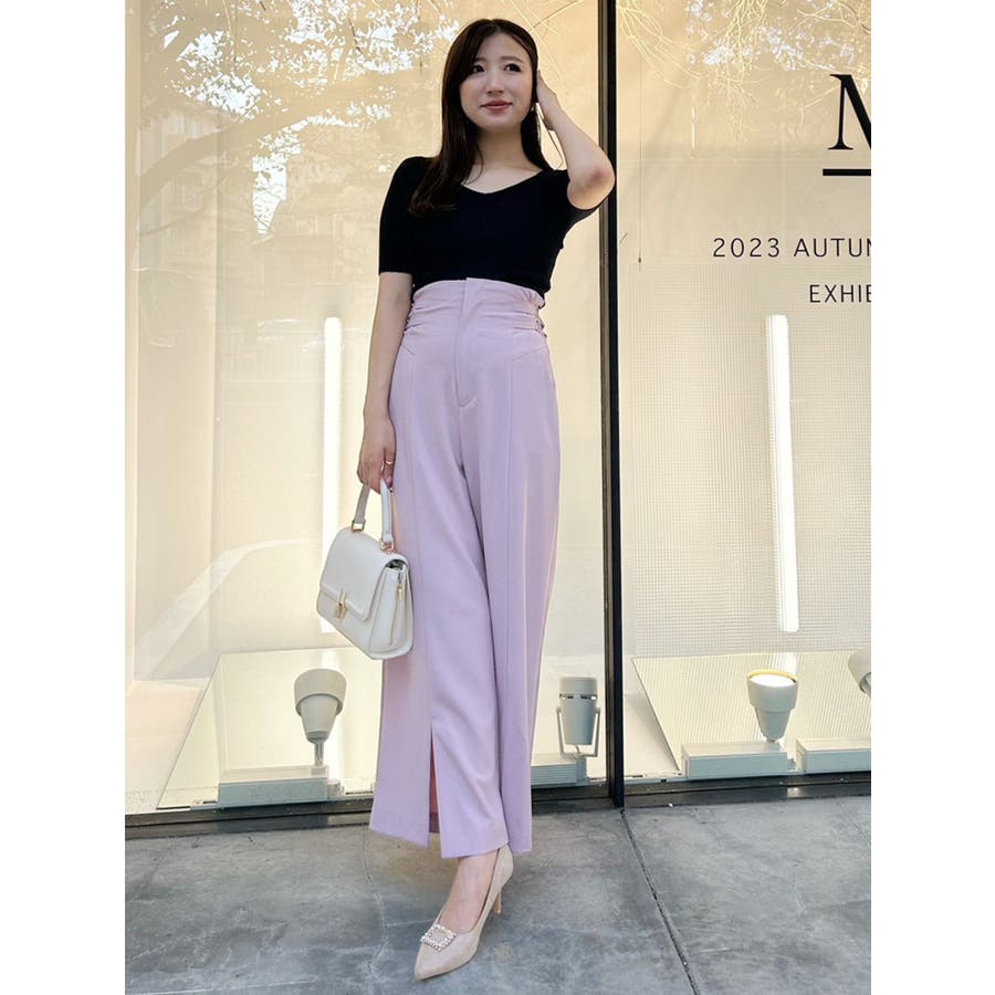 パンツスタイルで今っぽいフェミニンカジュアルな着こなしに。