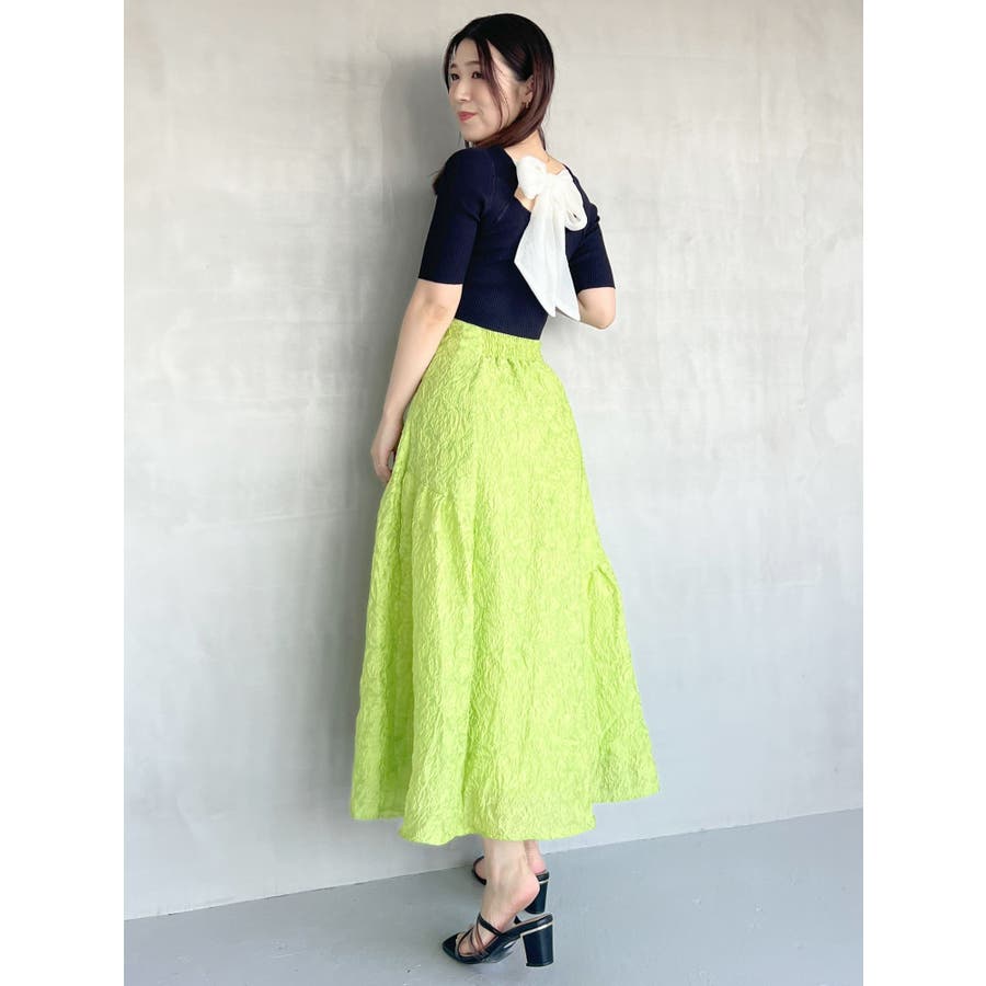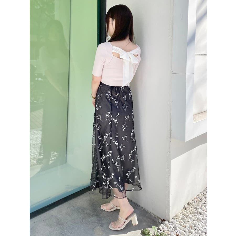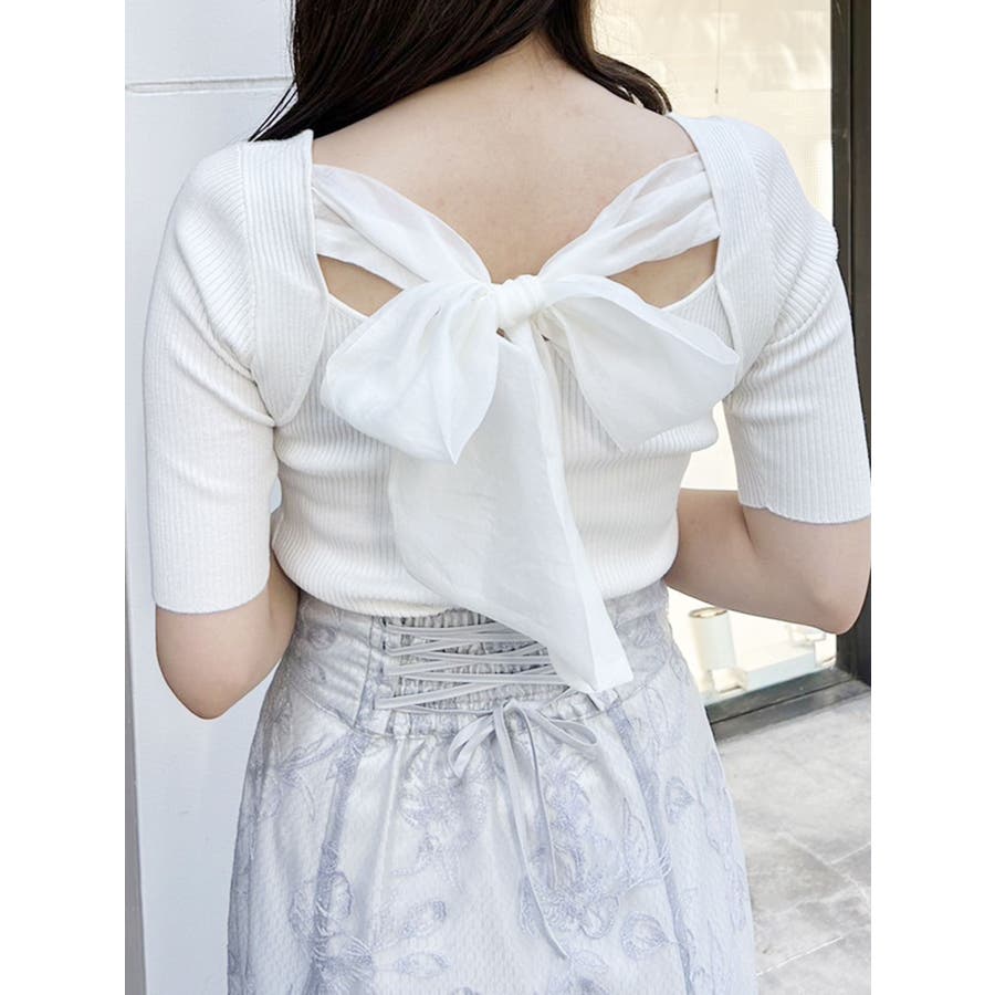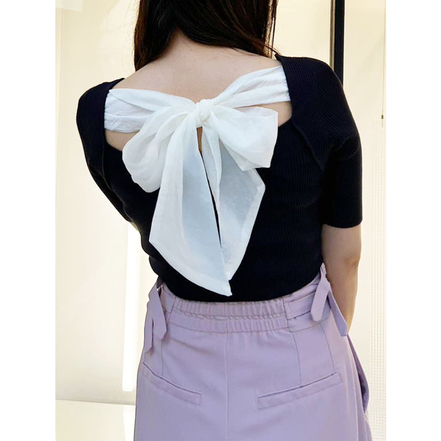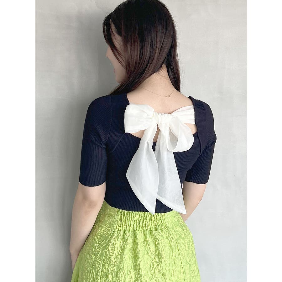 \ トレンドのオーガンジーを大胆に使用したリボンニット /