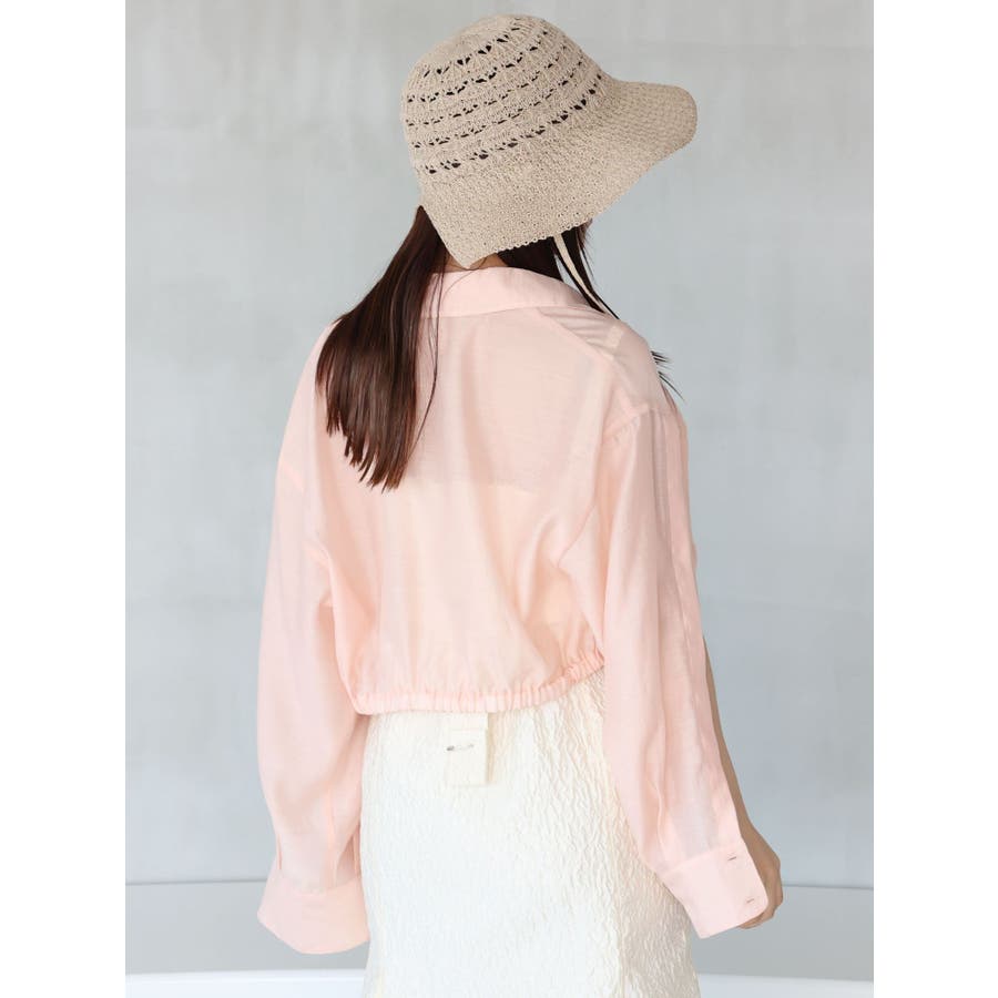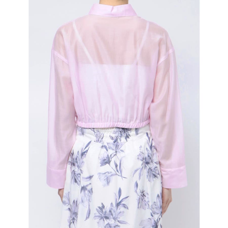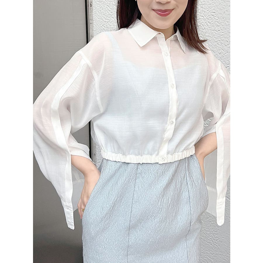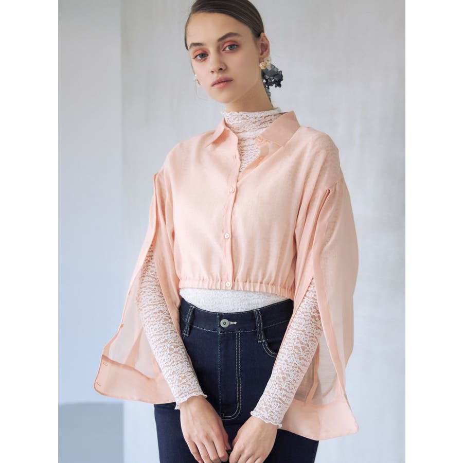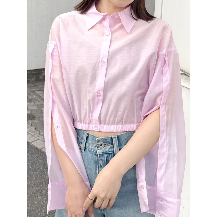 \ トレンドのスリットスリーブで洒落感を演出 / 軽くシアー感のある素材を使用したクロップドシャツ。裾にゴム通して、バルーンっぽくギャザー感をプラスすることで、襟を抜いて着たときに背中にコロンとした丸みが生まれコクーンシルエットになります。袖には隠しボタンで開閉できる2WAYスリットデザインになっています。今年はスリットを開けて、手首を見せる着こなしがおすすめです。▼スタイリングキャミワンピースなどの肌見せアイテムの羽織として前を開けて着るのがおすすめです。▼サンプル修正箇所※モデル着用は全てサンプルです。※袖口のタックはなくなり、袖口幅も大きくなります。※ピンクの色味はもっと薄く桜色のようになります。 ▼気になるアイテムはお気に入り登録がおすすめ入荷情報やラスト1点、お得なプライスダウンの情報もいち早くお届け!