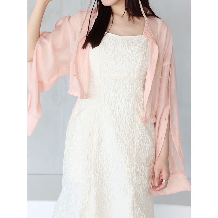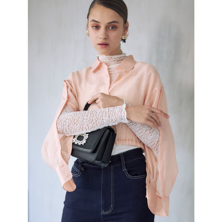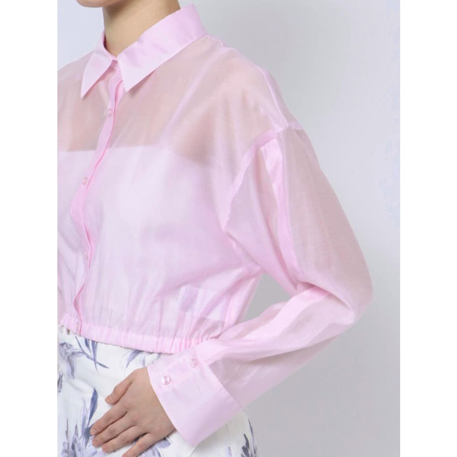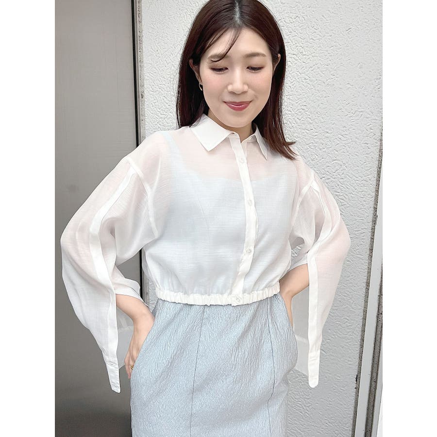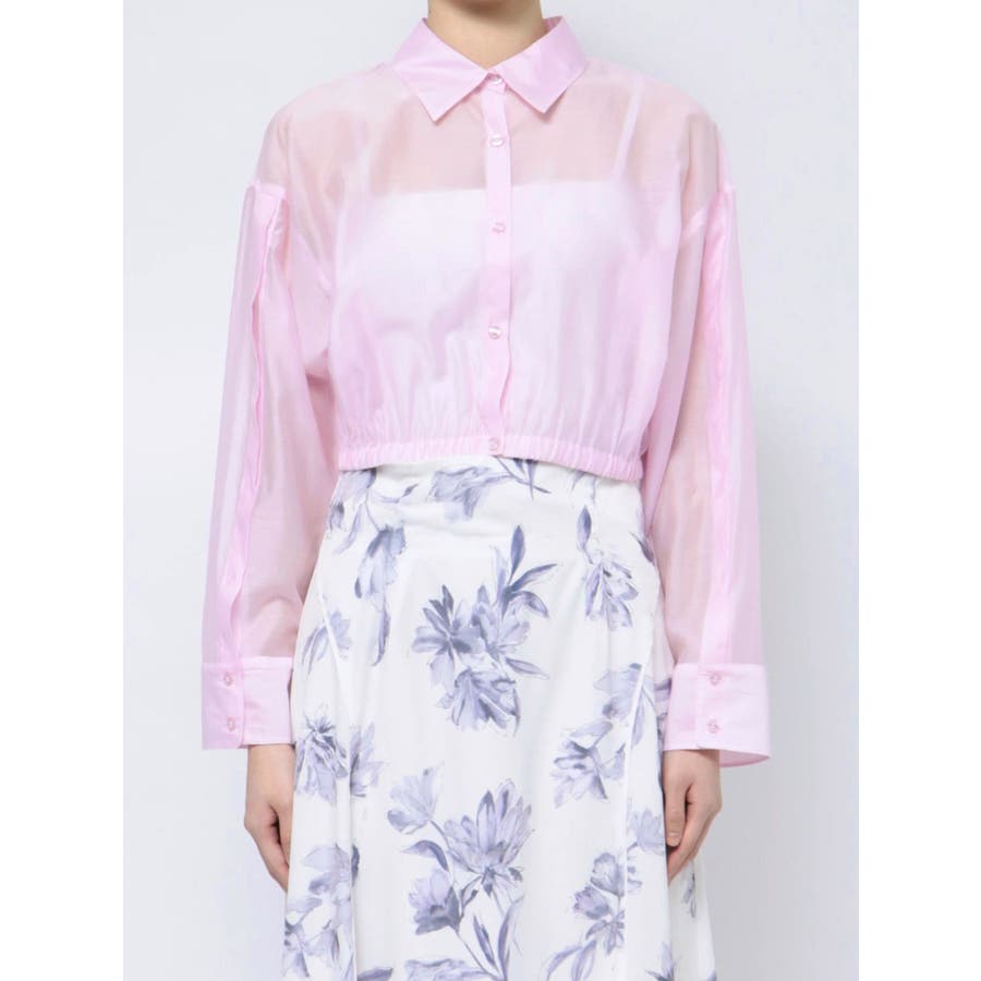 \ トレンドのスリットスリーブで洒落感を演出 / 軽くシアー感のある素材を使用したクロップドシャツ。裾にゴム通して、バルーンっぽくギャザー感をプラスすることで、襟を抜いて着たときに背中にコロンとした丸みが生まれコクーンシルエットになります。袖には隠しボタンで開閉できる2WAYスリットデザインになっています。今年はスリットを開けて、手首を見せる着こなしがおすすめです。▼スタイリングキャミワンピースなどの肌見せアイテムの羽織として前を開けて着るのがおすすめです。▼サンプル修正箇所※モデル着用は全てサンプルです。※袖口のタックはなくなり、袖口幅も大きくなります。※ピンクの色味はもっと薄く桜色のようになります。 ▼気になるアイテムはお気に入り登録がおすすめ入荷情報やラスト1点、お得なプライスダウンの情報もいち早くお届け!