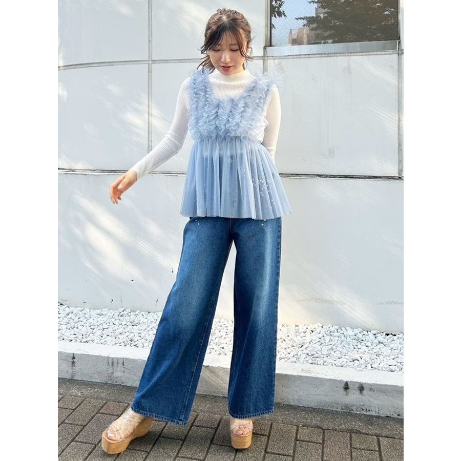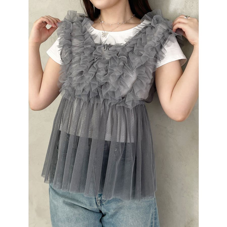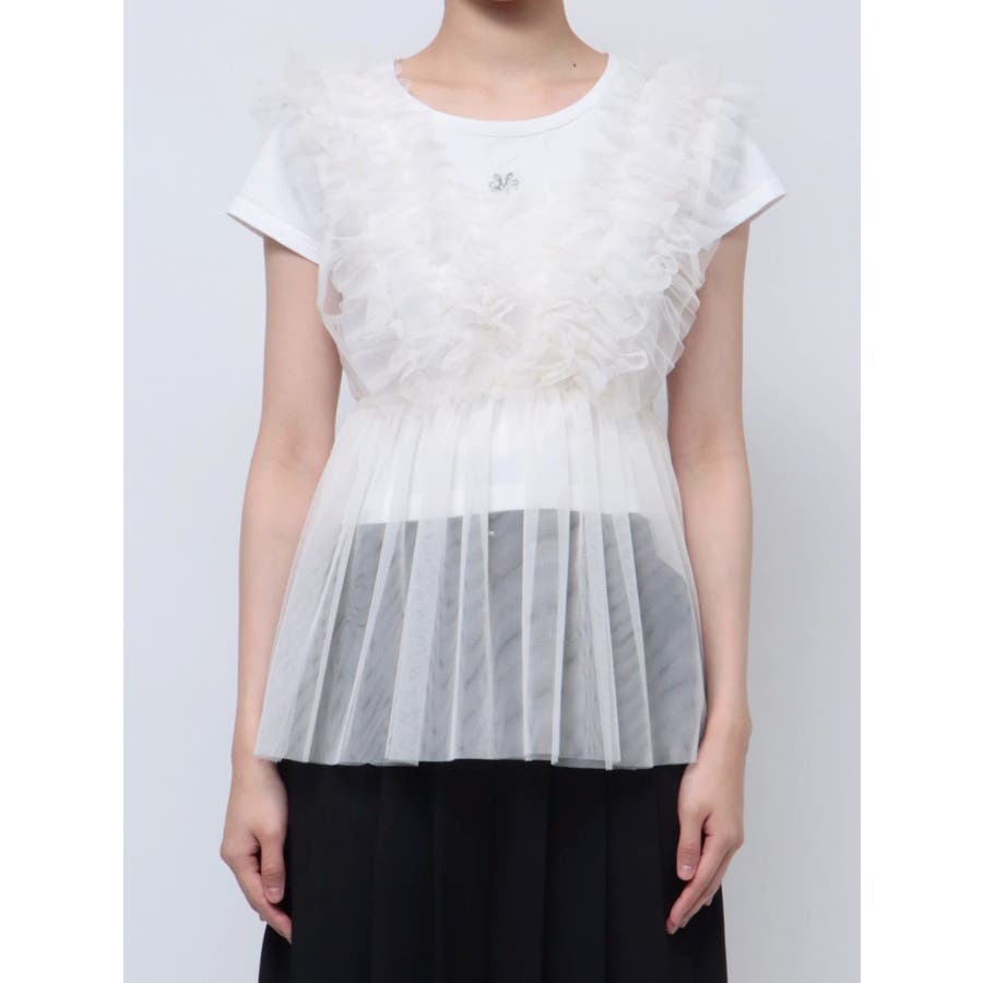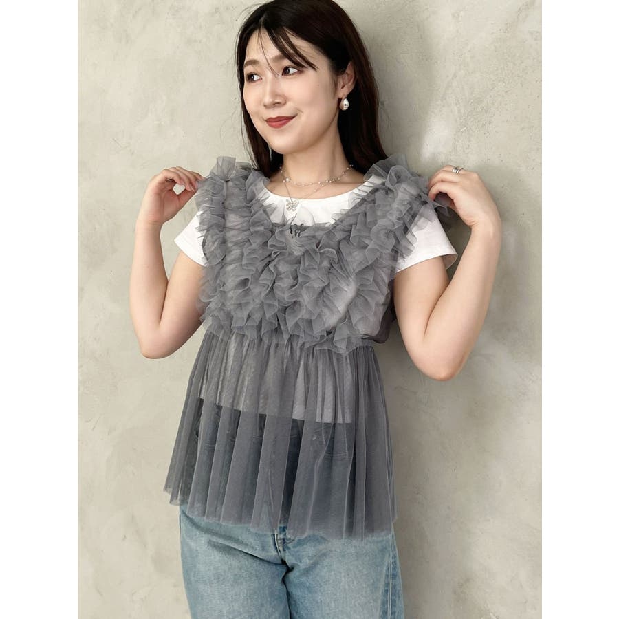 ソフトチュールをふんだんに使ったフリルトップス。 胸元がベア型になった面と、深Vになった面の2wayで着用可能なデザインです。 ボリュームたっぷりですが、胸下切替なのでメリハリのあるシルエットになります。 短めなチュニック丈なので、パンツともスカートとも合わせやすく、 ペプラム部分は違う色のチュールを2枚重ねて動くたびに色が変化して 見えるように作っているのがこだわりポイントです。 ▼スタイリング 今年はTシャツなどの上にレイヤードして着るのがおすすめです。 秋冬になればリブニットと合わせて着られるのでシーズン問わず 着られるアイテムです。 ▼おすすめスタイリングアイテム ・エンブロイダリーワンポイントロゴTシャツ ・【セットアップ着用可】ツイルタックショートパンツ ・フレアフルレングスデニム ▼気になるアイテムはお気に入り登録がおすすめ 入荷情報やラスト1点、お得なプライスダウンの情報もいち早くお届け!