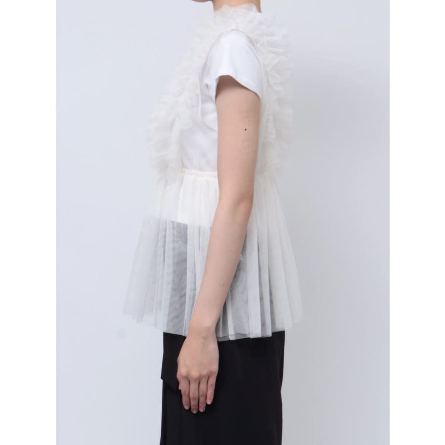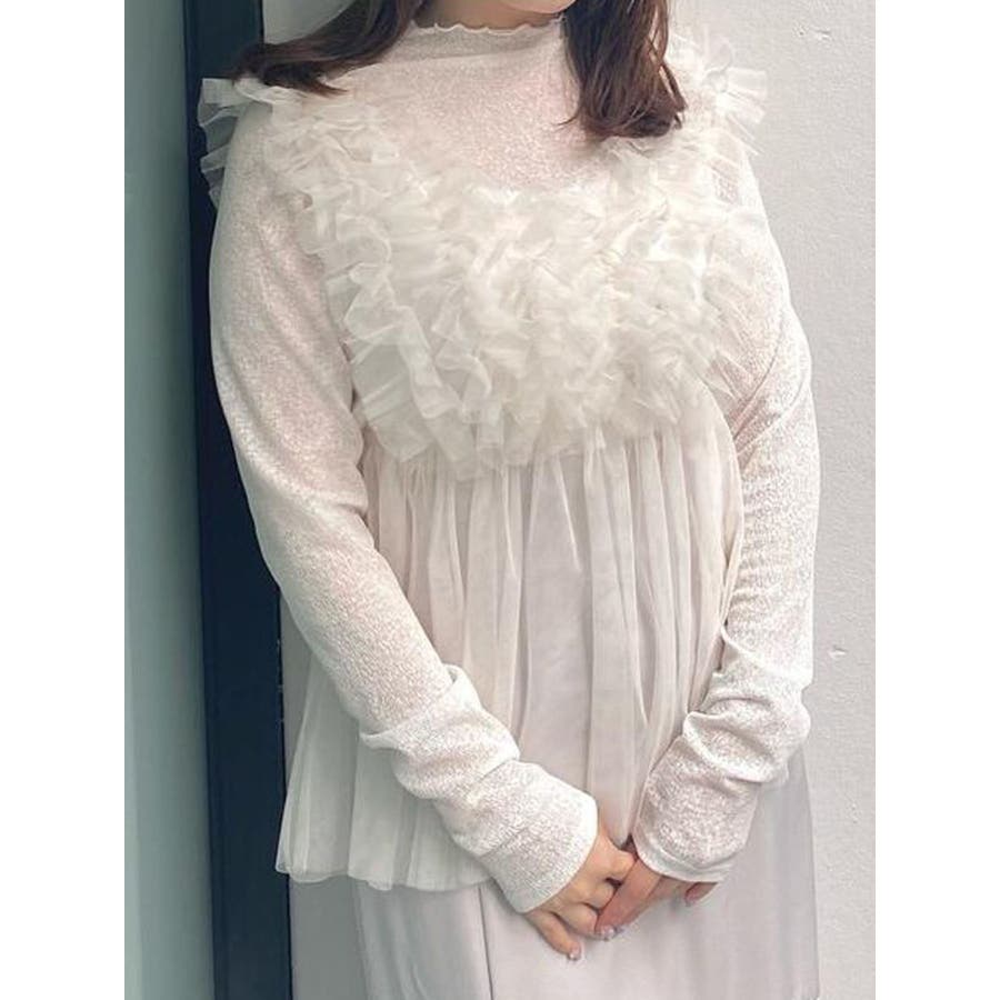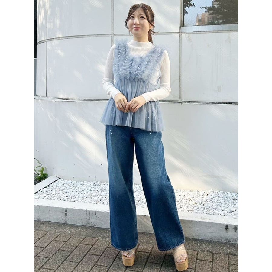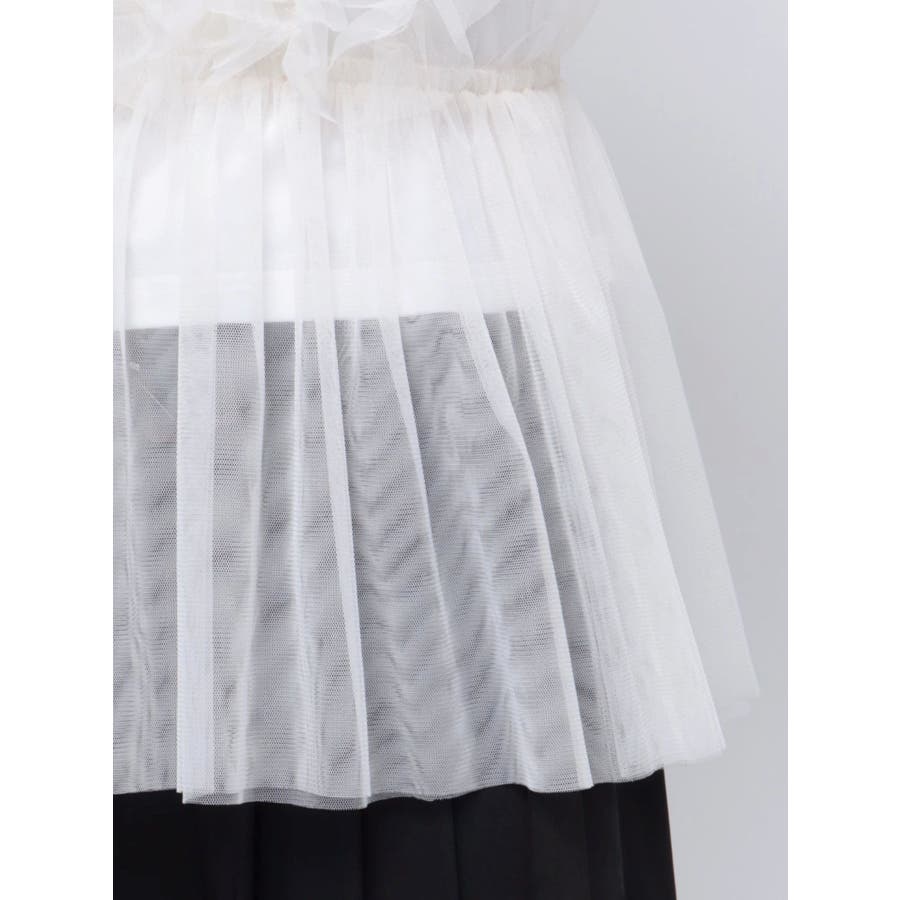ソフトチュールをふんだんに使ったフリルトップス。 胸元がベア型になった面と、深Vになった面の2wayで着用可能なデザインです。 ボリュームたっぷりですが、胸下切替なのでメリハリのあるシルエットになります。 短めなチュニック丈なので、パンツともスカートとも合わせやすく、 ペプラム部分は違う色のチュールを2枚重ねて動くたびに色が変化して 見えるように作っているのがこだわりポイントです。 ▼スタイリング 今年はTシャツなどの上にレイヤードして着るのがおすすめです。 秋冬になればリブニットと合わせて着られるのでシーズン問わず 着られるアイテムです。 ▼おすすめスタイリングアイテム ・エンブロイダリーワンポイントロゴTシャツ ・【セットアップ着用可】ツイルタックショートパンツ ・フレアフルレングスデニム ▼気になるアイテムはお気に入り登録がおすすめ 入荷情報やラスト1点、お得なプライスダウンの情報もいち早くお届け!