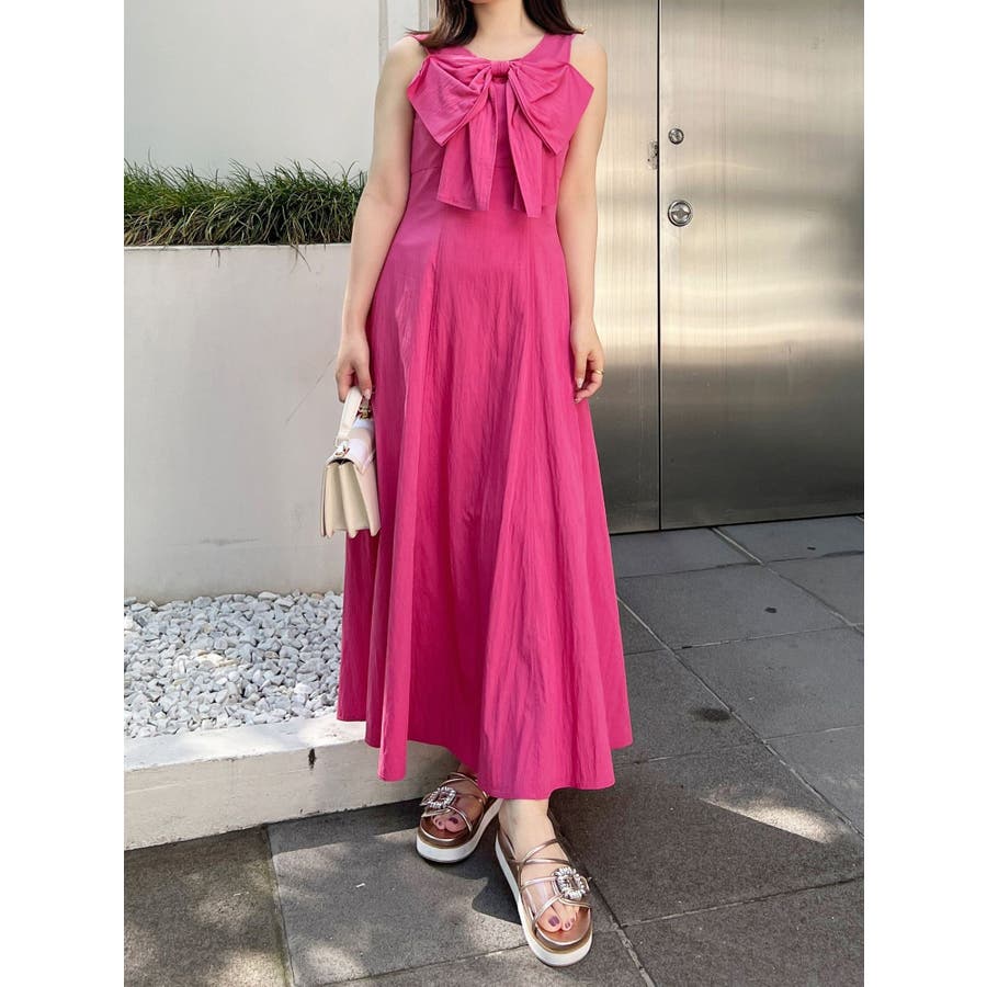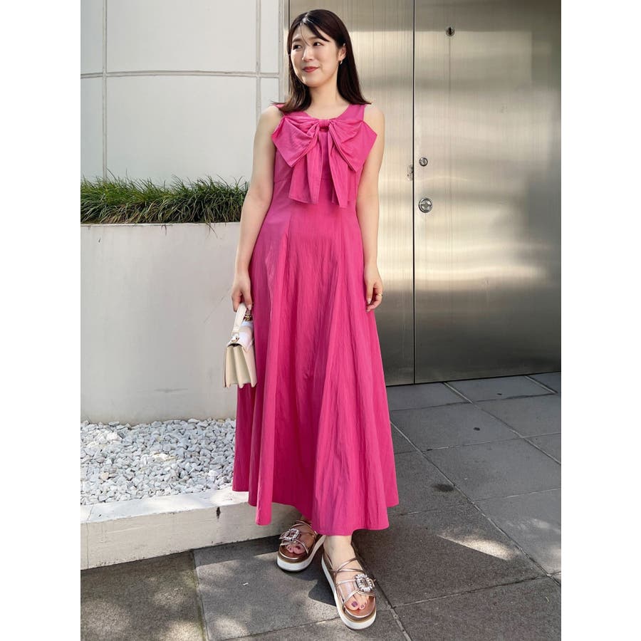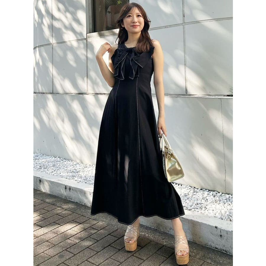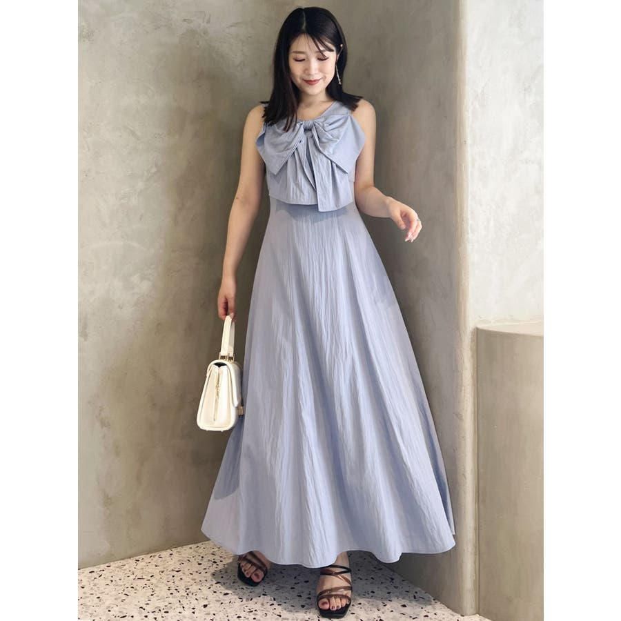 \ トレンドのリボンデザインが大人の甘さを演出 / フロントのビッグリボンがアイキャッチで裾広がりなシルエットが大人可愛いワンピース。 軽く程よい光沢感のある素材で、しわになっても元に戻りやすいカジュアルさと エレガントさが両立した生地感なので、 ビッグリボンディティールでも甘くなりすぎないのがポイント。 スッキリとしたネックラインなので、デコルテを華奢に魅せてくれます。 ハイウエストでスッキリとした上身頃に、裾広がりのフレアシルエットで メリハリを作り美シルエットに。 また、後ろウエストはゴム仕様なのも嬉しいポイント。 ※SM着丈差7CM ▼スタイリング 1枚でも着映え度抜群なワンピースなので、 フラットな厚底サンダルと合わせてフェミニンカジュアルな スタイリングが今っぽくお勧めです。 ▼おすすめスタイリングアイテム ・バックスリットシアーシャツ ・コンパクトシアーカーディガン ・クリアチューブウェッジサンダル ▼その他おすすめワンピースはこちら ▼その他おすすめ羽織アイテムはこちら ▼気になるアイテムはお気に入り登録がおすすめ 入荷情報やラスト1点、お得なプライスダウンの情報もいち早くお届け!