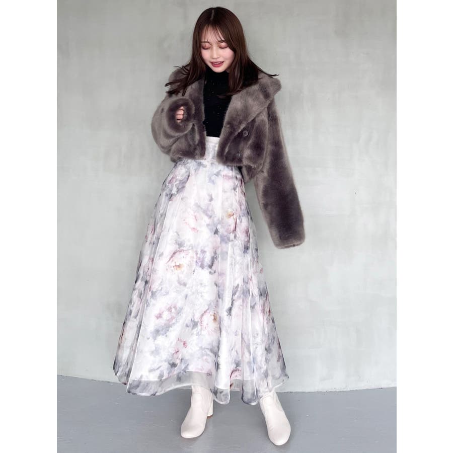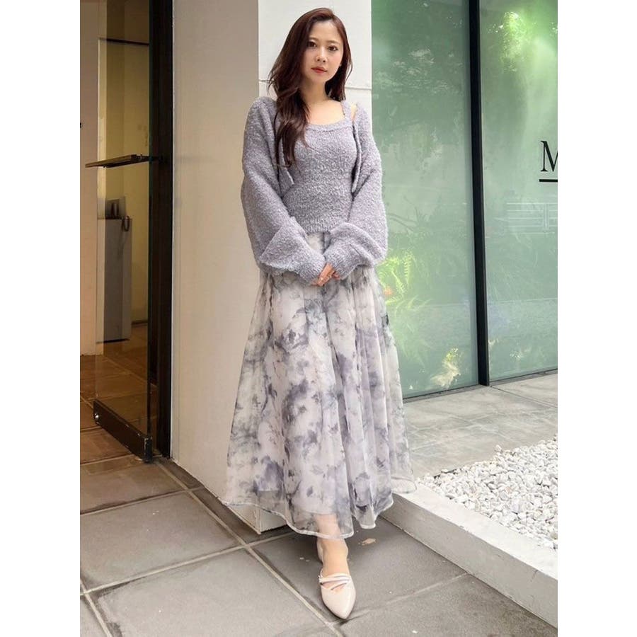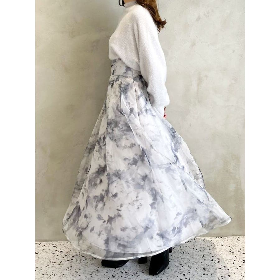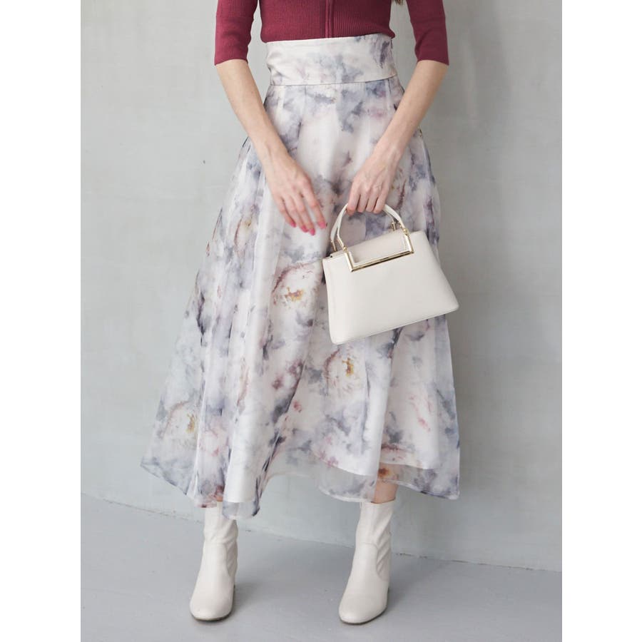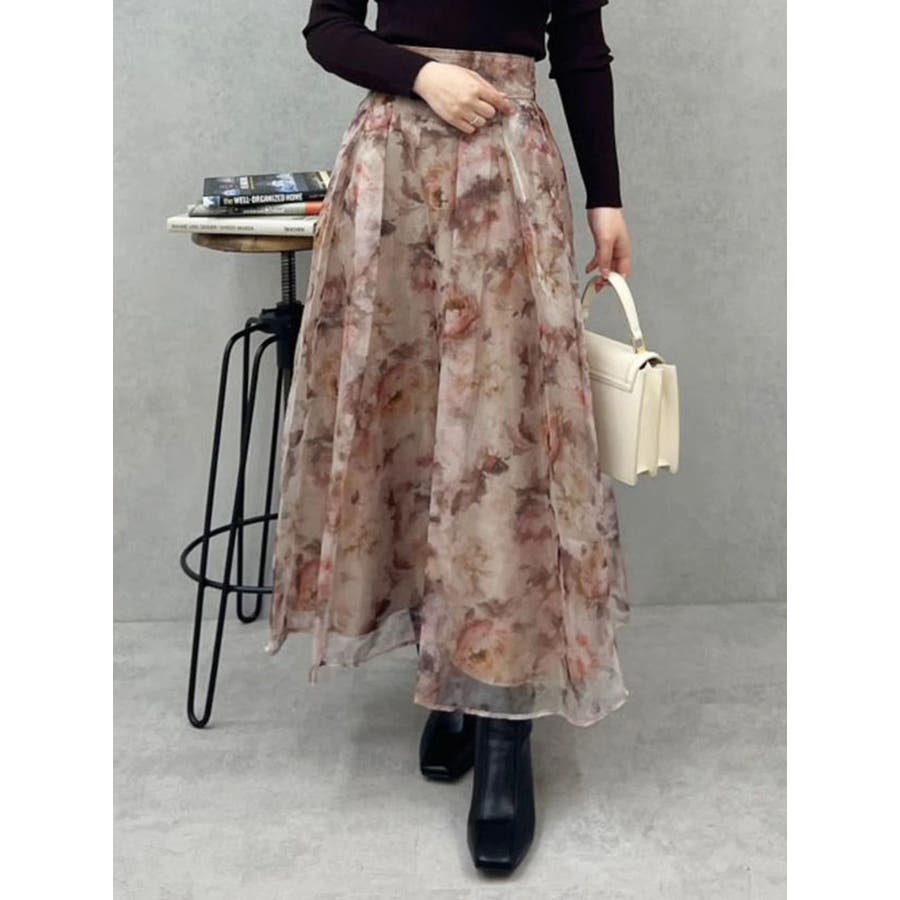 絵画を思わせるようなペイントタッチの花柄を シアー感のあるオーガンジーにプリントしたスカートです。 ウエストベルトを付けることでフレアスカートのシルエットとの メリハリがつき、スタイルアップが叶います。 タックもウエストベルト下に中縫いをすることで、 腰周りをすっきりと見せてくれます。 後ろウエストをシャーリング仕様にすることで、 体にフィットしやすくかつ着心地の良い仕上がりにしました。 ▼スタイリング リブのニットでフィットアンドフレアシルエットにすると スカートの主役感を引き立ててくれます。 ▼サンプル修正箇所 ※モデル着用はすべてサンプルです。 ※柄は75%サイズに小さくなります。 ※全体的にプリントが濃くなります。 ※レッドの裏地はピーチオレンジ色になります。 ※Sサイズ-6.5cm※詳細画像が正規の商品となります。 ▼その他おすすめボトムはこちら ▼気になるアイテムはお気に入り登録がおすすめ 入荷情報やラスト1点、お得なプライスダウンの情報もいち早くお届け!※着用画像はフラッシュの加減で実際の製品と色味等が異なる場合がございますので、生地のズームアップ画像をご確認ください。※ご利用の端末画面の設定により実際の商品と色味が異なる場合がございます。【商品特徴】透け感:なし(一部:あり)伸縮性:なし生地の厚さ:普通サイズ感:ゆったり裏地:ありポケット:あり(横)