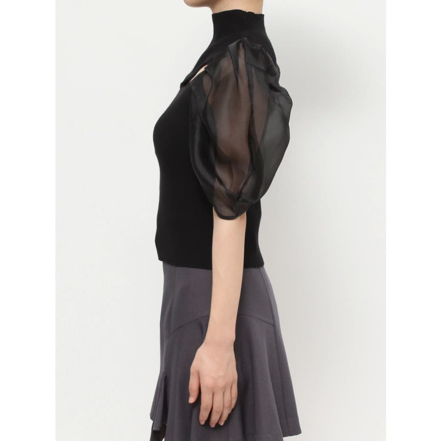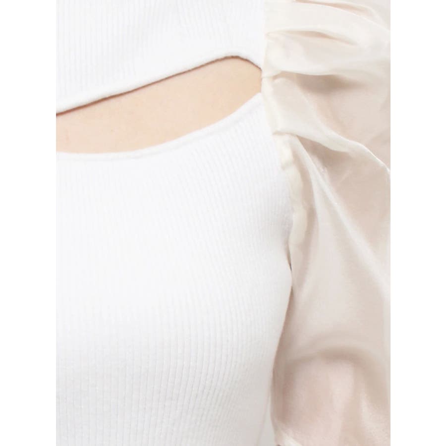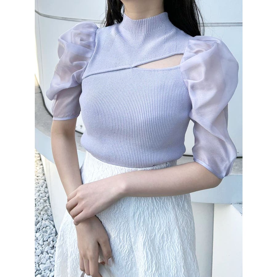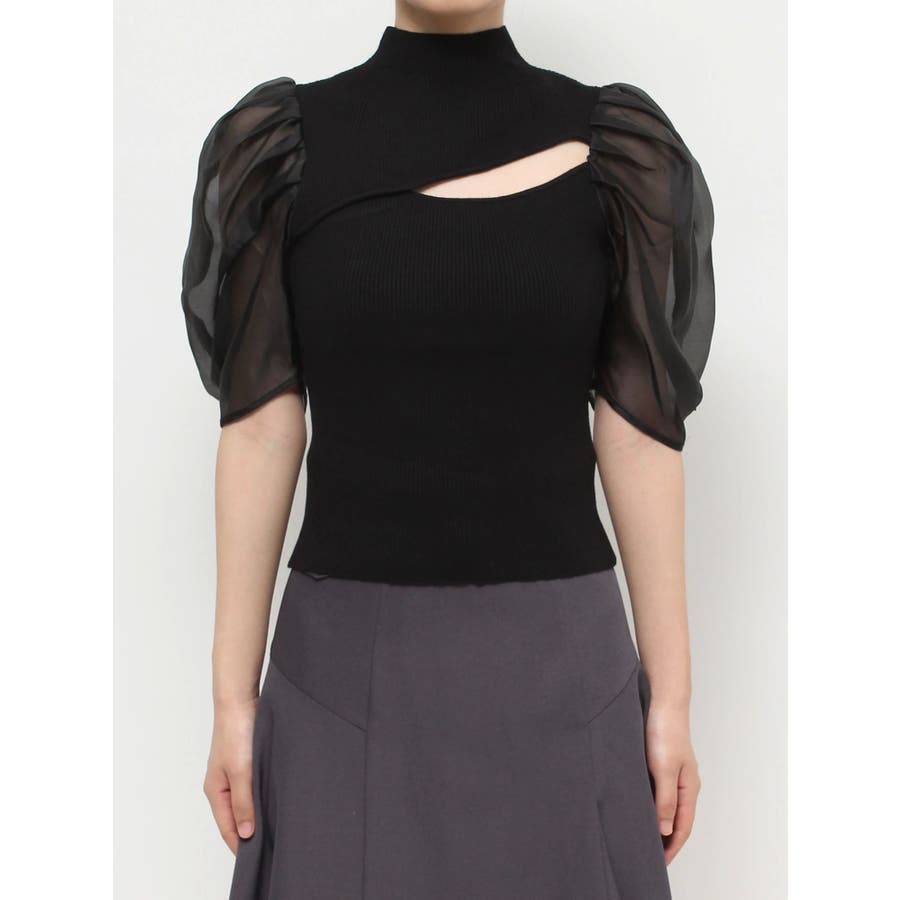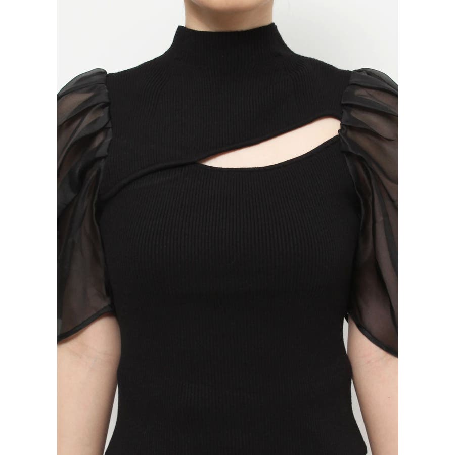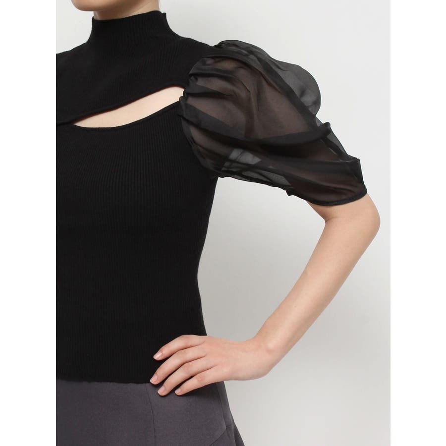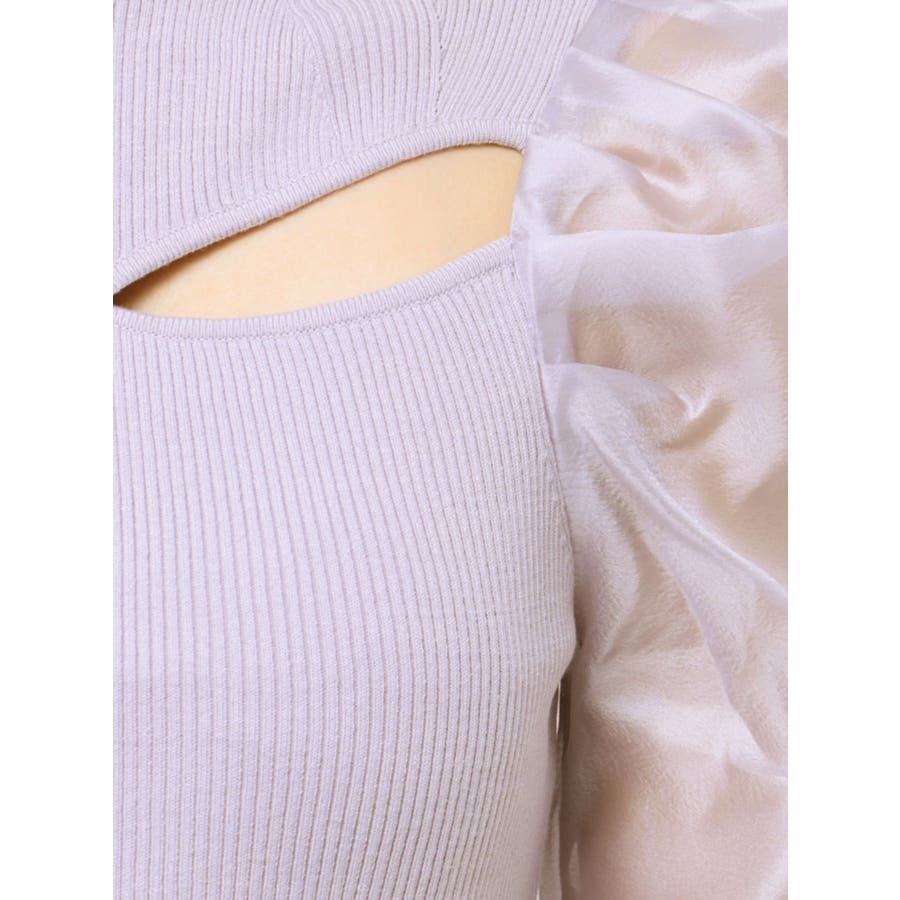 2WAY異素材パフスリーブカットアウトニット